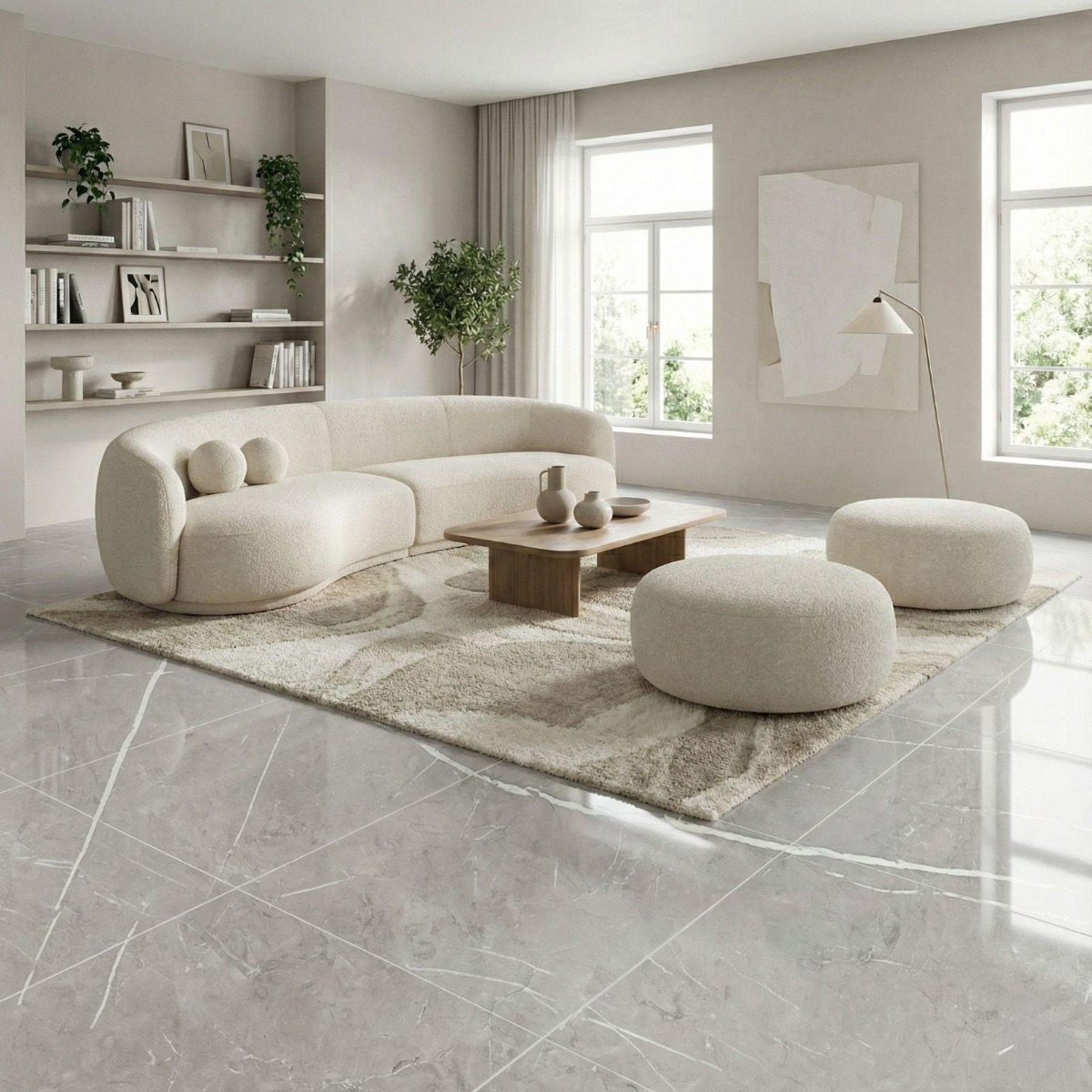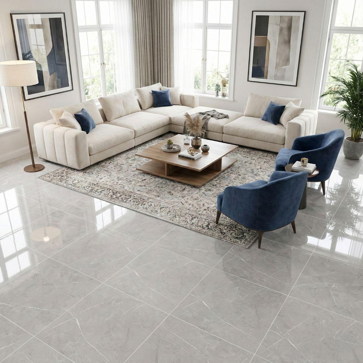 Alcora Grey Marble Effect Rectified Gloss Porcelain Wall and Floor Tile is an easy way to bring in the look of a marble effect tile without tipping the room into something overly formal. You get the familiar depth of a marble effect tile here, with smoky grey tones and subtle veining that make the surface feel layered and refined. As a porcelain tile it is built for regular use, so you get a finish that looks design-led without becoming awkward to maintain. Rectified edges also help the finished installation look cleaner and more precise. The square 600x600mm size sits comfortably in both compact and medium rooms, giving a neat finish that does not feel fussy. Because it works on both walls and floors, it is easy to carry through bathrooms, kitchens and circulation spaces for a more joined-up interior.