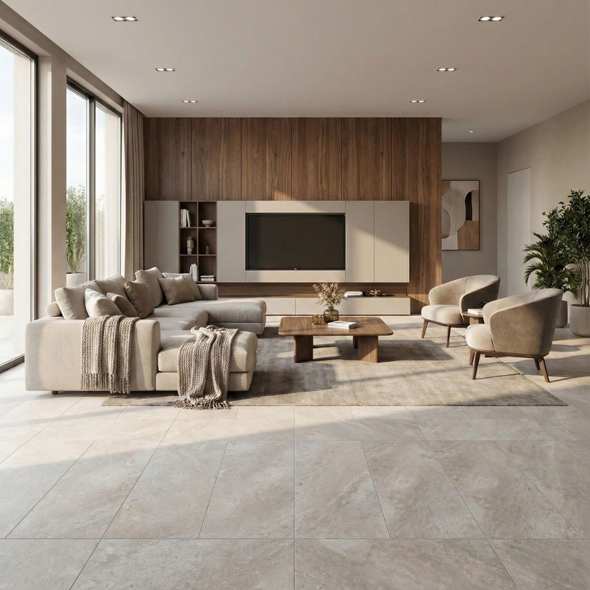 - Concrete-inspired surface with a simple architectural feel