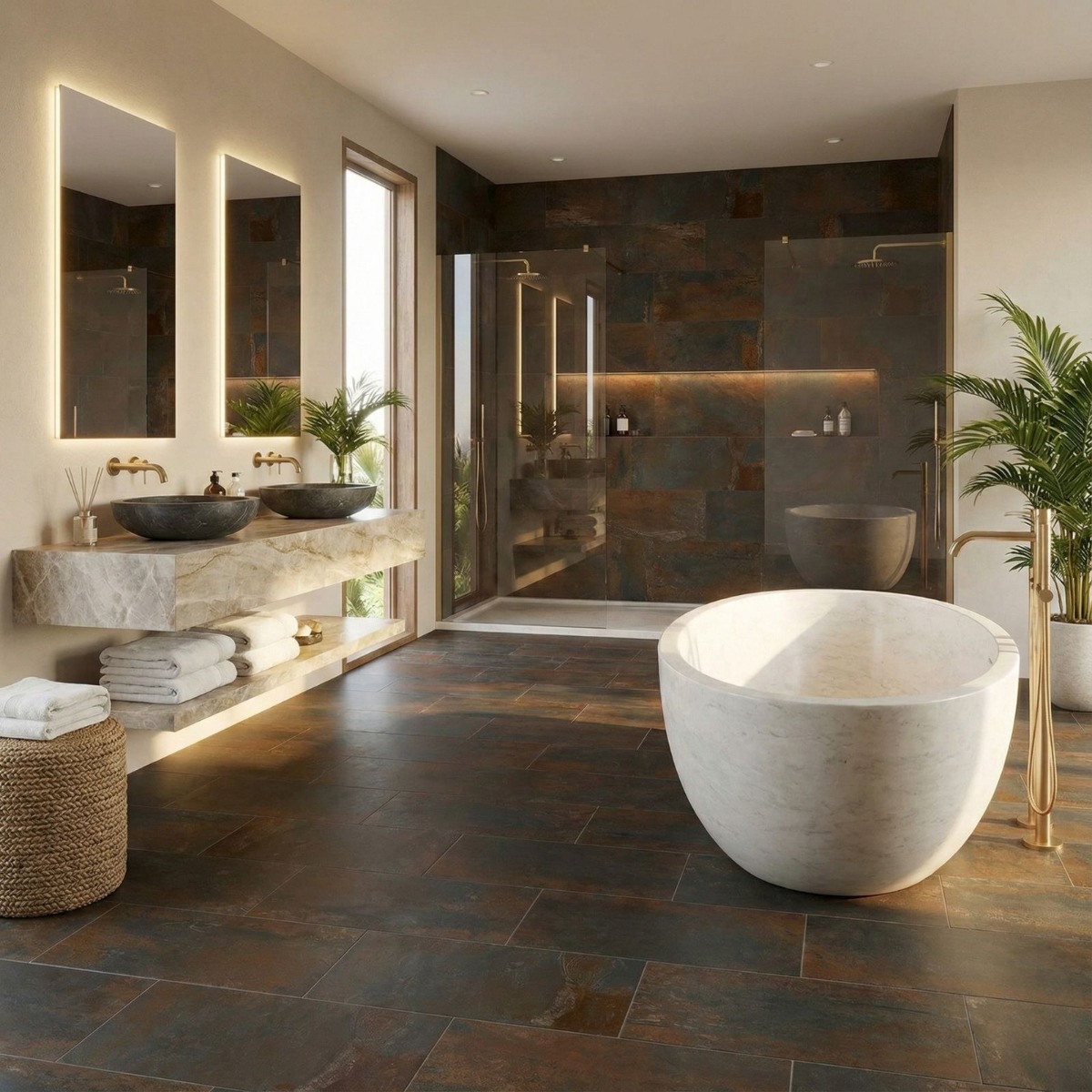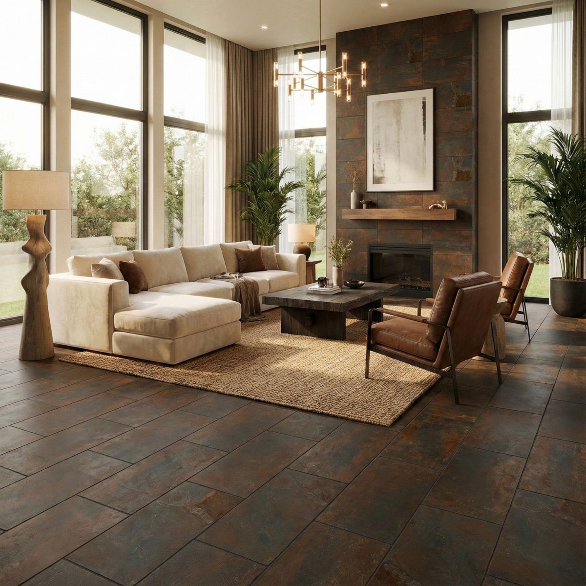 Alhambra Musgo Brown Concrete Effect Rectified Matt Porcelain Wall and Floor Tile brings a sharper, more design-led take to the matt porcelain wall and floor tile, with the pared-back attitude of a concrete effect tile. There is a stripped-back confidence to the brown concrete look, giving the room texture and depth without relying on strong pattern. The porcelain body gives it the kind of dense, easy-care surface that works well in everyday spaces. Rectified edges also help the finished installation look cleaner and more precise. The matt surface keeps the overall result grounded and easier to style day to day. At 300x600mm, the tile is easy to use in tighter spaces and still large enough to keep the finished surface feeling fairly clean. It is a strong fit for bathrooms, kitchens and connecting living spaces where using the same tile across walls and floors helps the scheme feel more unified.