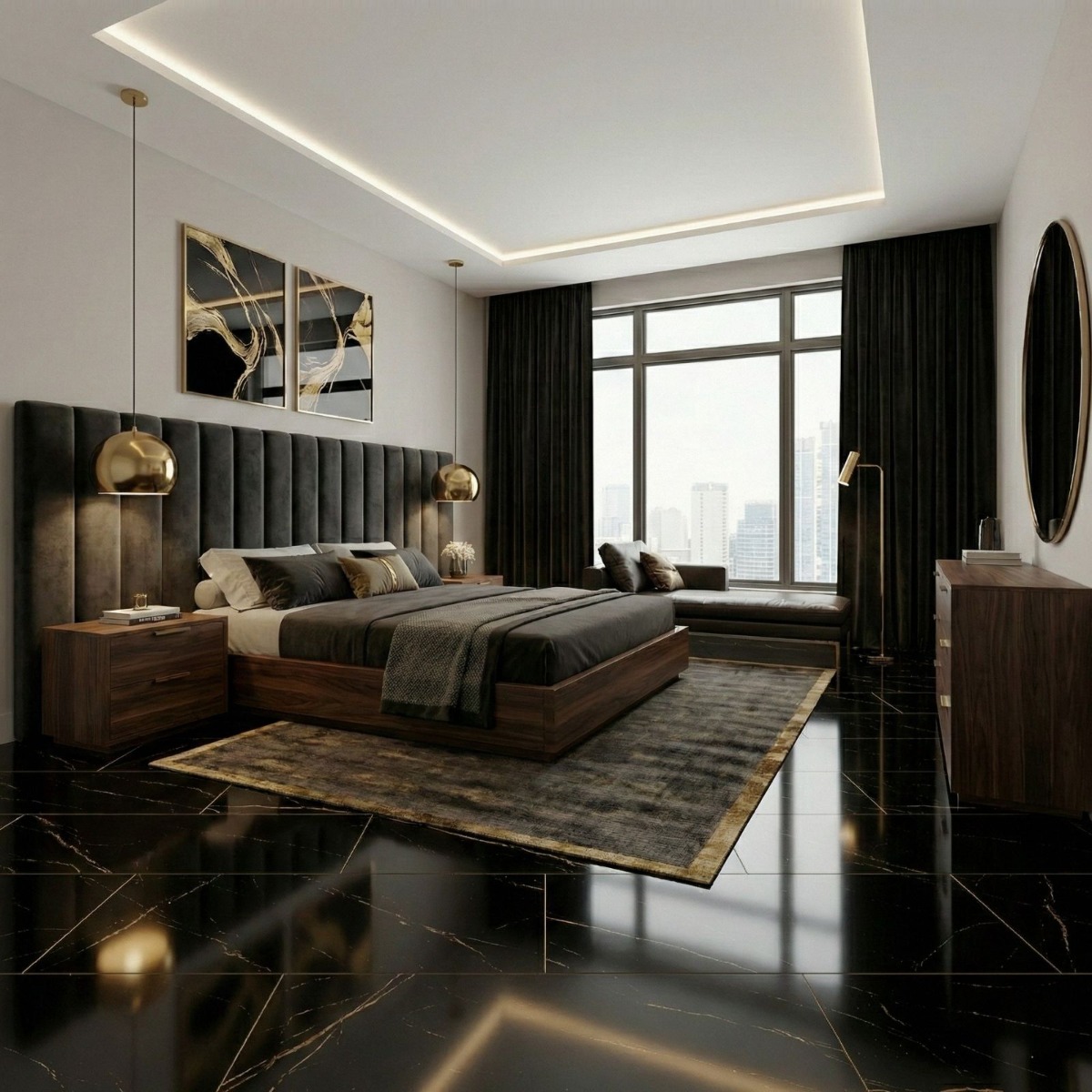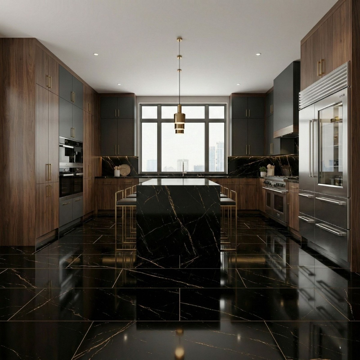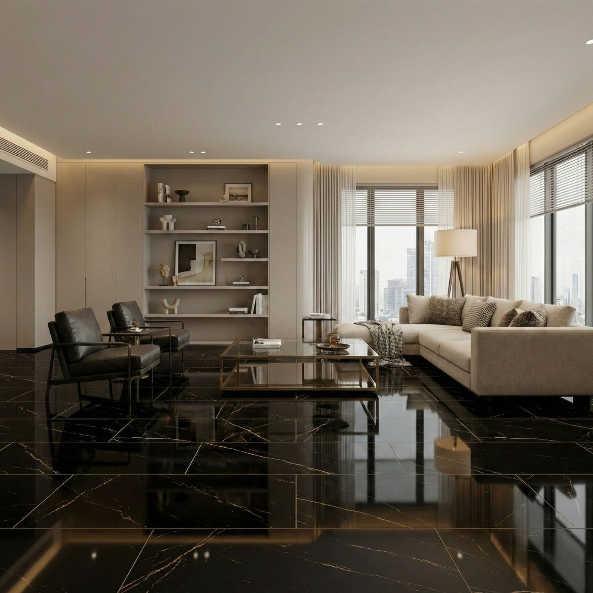 Atlantis Gold Black Marble Effect Rectified High Gloss Porcelain Wall and Floor Tile offers the elegance of a marble effect tile in a finish that still feels practical to live with. Its marble effect detailing adds natural-looking variation across the ink-dark background, and the high gloss finish shapes that movement in a way that feels polished rather than fussy. As a porcelain tile it is built for regular use, so you get a finish that looks design-led without becoming awkward to maintain. Rectified edges also help the finished installation look cleaner and more precise. The scale of the 600x1200mm format gives the room a more open read and reduces visual interruption across larger runs. Use it in bathrooms, kitchens or open-plan rooms when you want one surface to tie different zones together without losing visual interest.