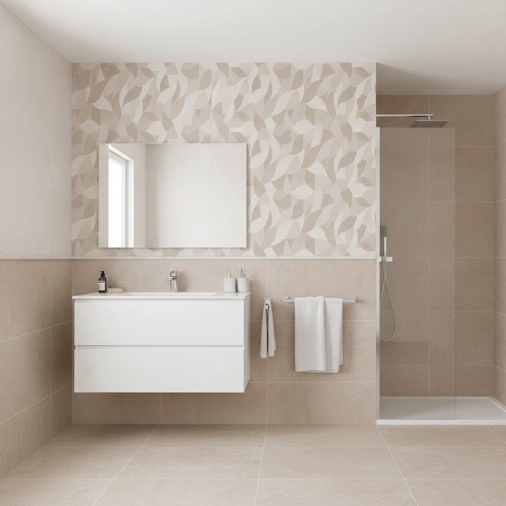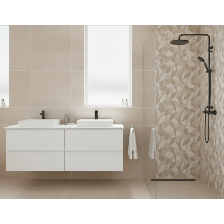Autumn Beige Concrete Effect Gloss Ceramic Wall Tile is a strong choice when you want the simplicity of a concrete effect tile with a cleaner, more finished appearance. The sand-toned concrete effect is softened slightly by the reflective surface, so you get an industrial look with a brighter edge. The ceramic body keeps installation and day-to-day cleaning straightforward, which is exactly what you want from a wall tile in busier rooms. The 300x600mm format is versatile enough for shower walls, splashbacks and smaller floors, adding structure without making the layout feel overworked. Use it on walls, niches and splashbacks when the brief is clean, design-led and easy to live with.