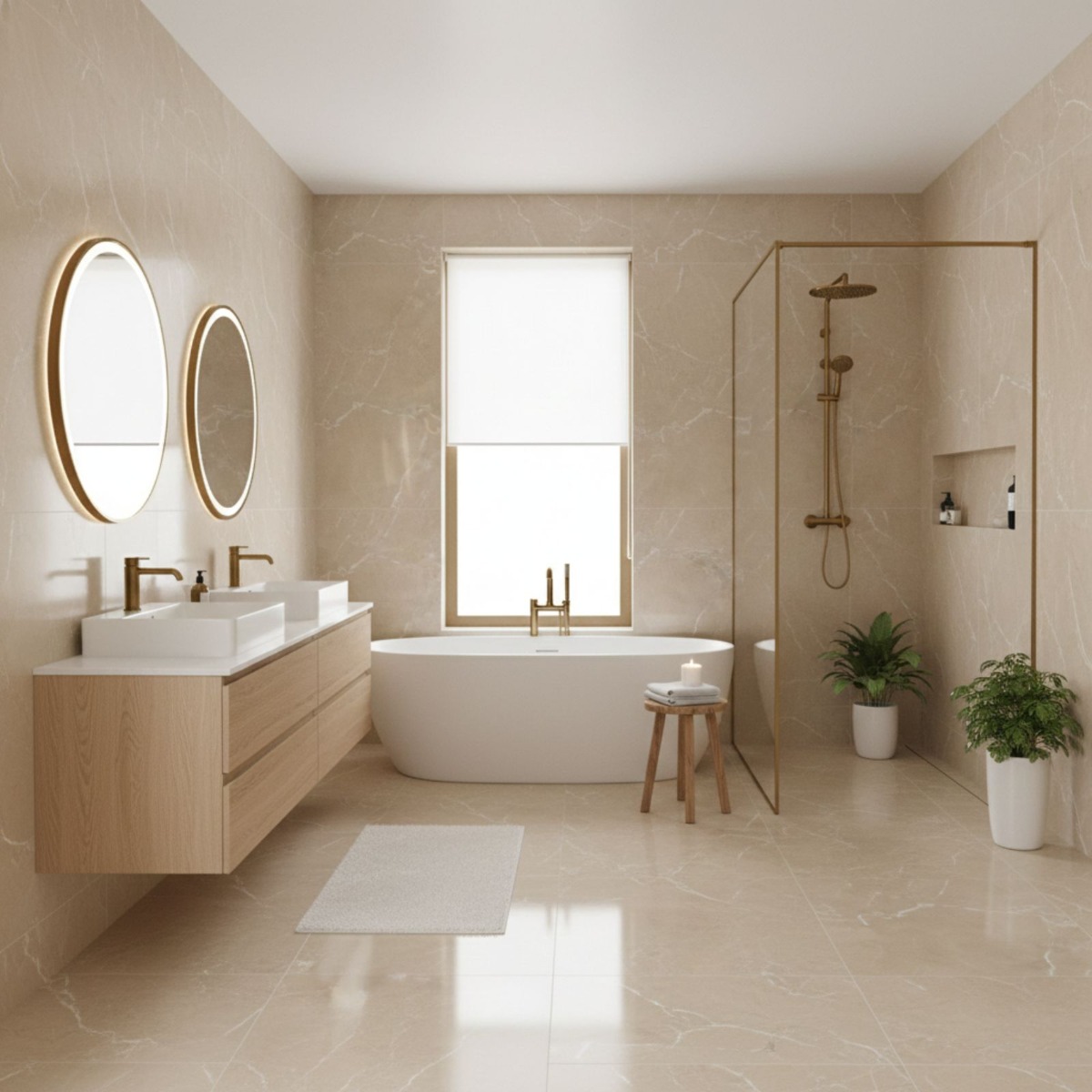 Bejha Beige Marble Effect Rectified Large Gloss Porcelain Wall and Floor Tile offers the elegance of a marble effect tile in a finish that still feels practical to live with. The mix of light beige shading and marble-inspired patterning gives the tile a premium feel, and the gloss finish stops it from looking one-dimensional. The porcelain body gives it the kind of dense, easy-care surface that works well in everyday spaces. Rectified edges also help the finished installation look cleaner and more precise. Because it comes in 600x1200mm, the layout feels broader and calmer, which is especially useful when you want a more seamless finish. Because it works on both walls and floors, it is easy to carry through bathrooms, kitchens and circulation spaces for a more joined-up interior.