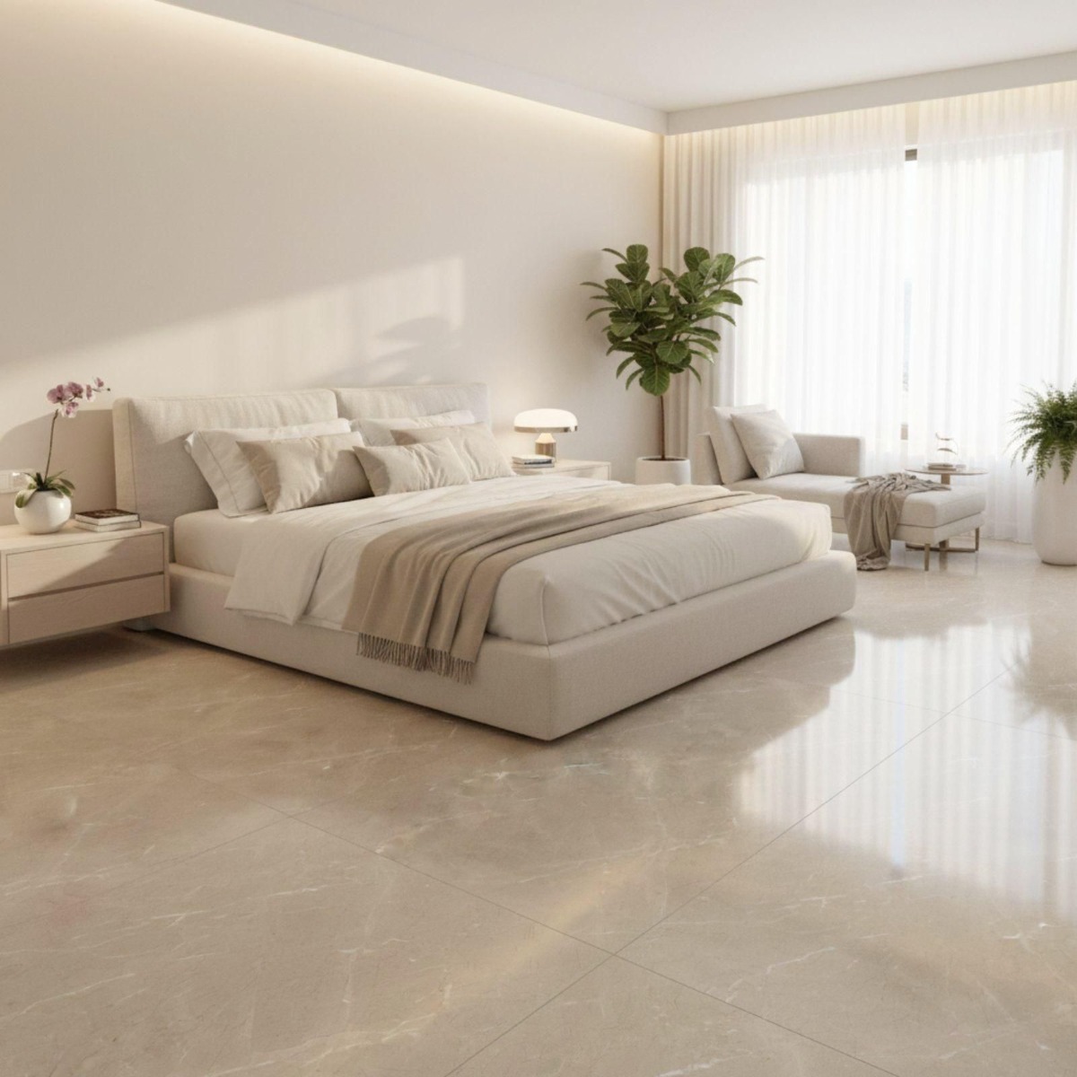 Bejha Beige Marble Effect Rectified Large Gloss Porcelain Wall and Floor Tile