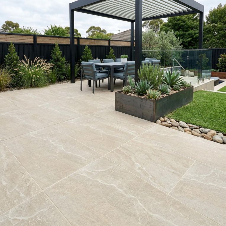 Bodo Beige Matt Porcelain Outdoor Paving Slab Tiles is a clean, versatile take on the porcelain outdoor paver when you want something with presence but not noise. The overall look is restrained but not flat, using light beige tones and a matt surface to add subtle character. It is not just about looks: the porcelain build is well suited to outdoor wear, so the tile keeps its cleaner finish without demanding constant upkeep. Rectified edges also help the paving look neater once installed. The 600x900mm format lands in a useful middle ground, helping surfaces look broader while keeping the installation feeling proportionate. Use it across patios, seating areas or garden paths when the goal is a cleaner exterior scheme with less maintenance drama.