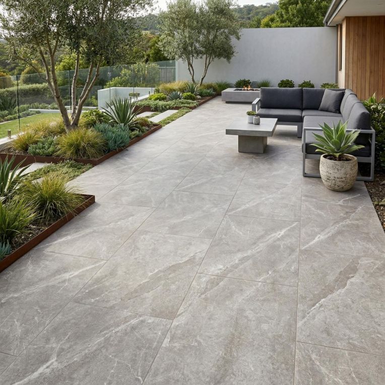Bodo Grey Matt Porcelain Outdoor Paving Slab Tiles is a clean, versatile take on the porcelain outdoor paver when you want something with presence but not noise. The overall look is restrained but not flat, using stone-grey tones and a matt surface to add subtle character. From a practical point of view, the porcelain body gives you a durable outdoor surface that is simple to clean and comfortable to specify across larger areas. The rectified edges sharpen up the overall installation too. The 600x900mm format lands in a useful middle ground, helping surfaces look broader while keeping the installation feeling proportionate. This is well suited to garden settings that need a smarter surface underfoot, from patios through to more defined entertaining zones.