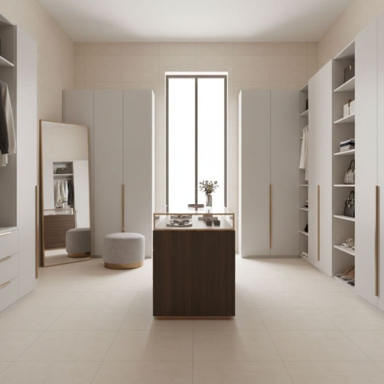 Cairo Cream Concrete Effect Rectified Matt Porcelain Wall and Floor Tile brings a sharper, more design-led take to the matt porcelain wall and floor tile, with the pared-back attitude of a concrete effect tile. Its concrete effect finish keeps the design grounded and contemporary, with ivory-toned tones that are easy to layer into modern interiors. Practicality is where it earns its keep: the porcelain construction is durable and straightforward to look after, which matters in hard-working rooms. Rectified edges also help the finished installation look cleaner and more precise. The 800x800mm format gives the room a generous, balanced grid and keeps grout lines from dominating the finished look. Because it works on both walls and floors, it is easy to carry through bathrooms, kitchens and circulation spaces for a more joined-up interior.