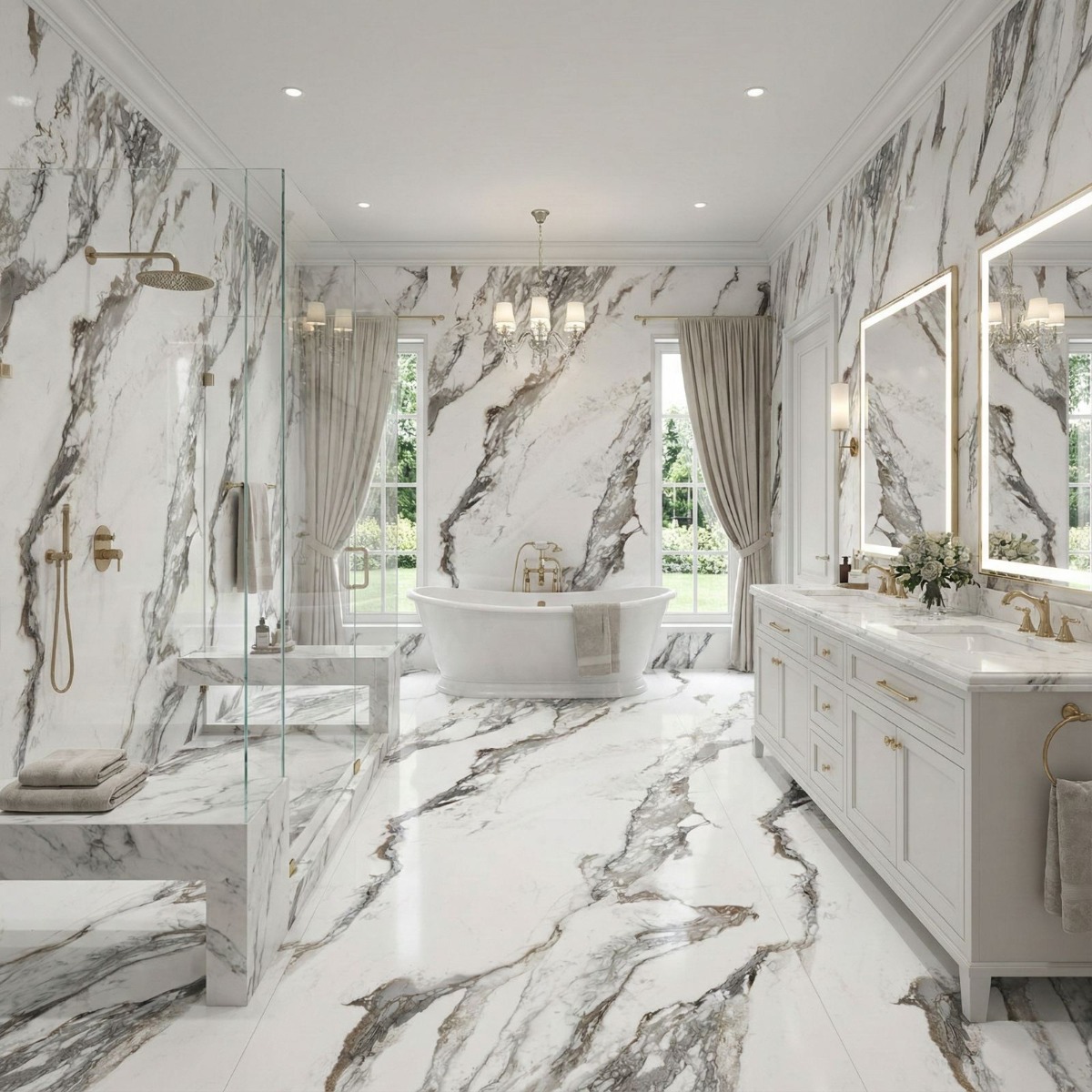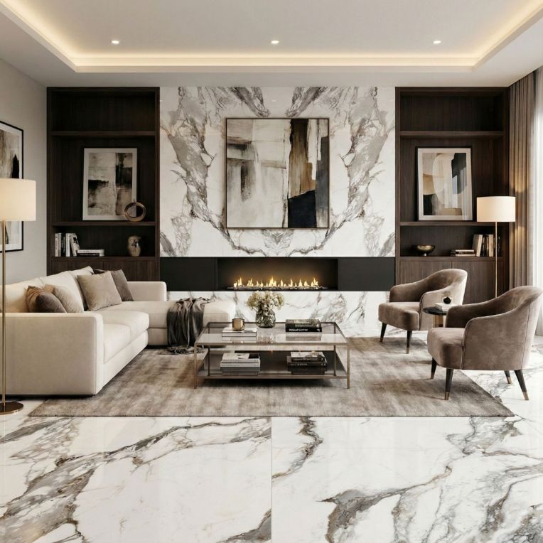 Pairing tip: Pair it with crisp white walls, soft grey grout and simple timber or charcoal accents so the marble effect remains the focal point.