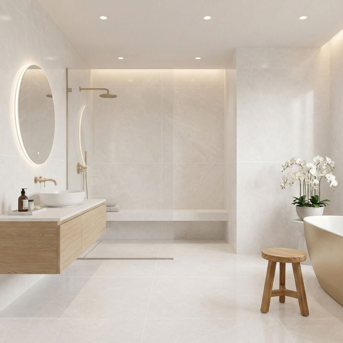Capitolina Cream Concrete Effect Rectified Large Matt Porcelain Wall and Floor Tile brings a sharper, more design-led take to the matt porcelain wall and floor tile, with the pared-back attitude of a concrete effect tile. The concrete effect treatment gives the warm cream surface an urban, design-led feel that still reads warm enough for residential spaces. The benefit of choosing porcelain here is that the surface stays robust and low-fuss in daily life, rather than looking good only on day one. Rectified edges also help the finished installation look cleaner and more precise. The matt surface keeps the overall result grounded and easier to style day to day. The 600x600mm square format creates a tidy, even grid that feels modern without becoming stark. Use it in bathrooms, kitchens or open-plan rooms when you want one surface to tie different zones together without losing visual interest.