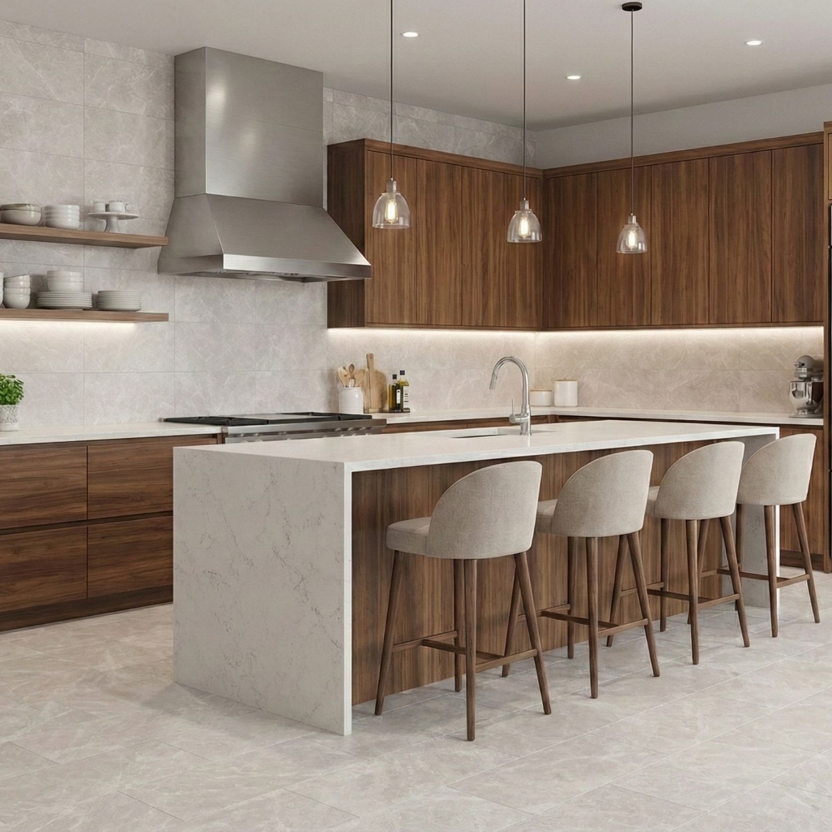 Pairing tip: Combine it with crisp whites, black fittings and warm timber details to keep the concrete look balanced rather than cold.