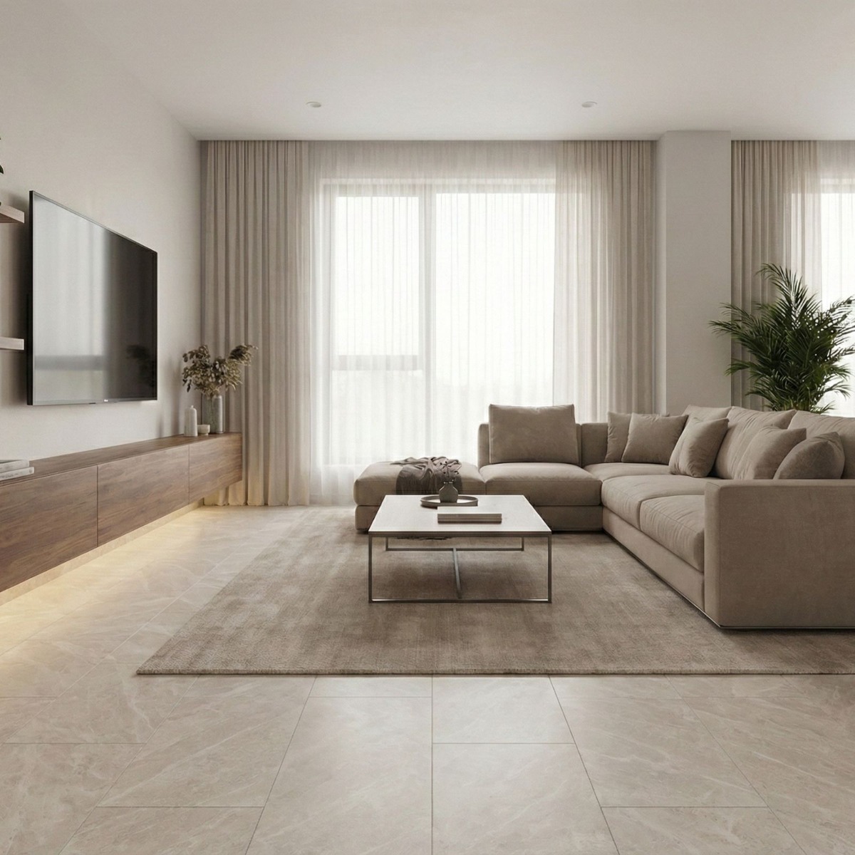 Capitolina Grey Concrete Effect Rectified Matt Porcelain Wall and Floor Tile gives the matt porcelain wall and floor tile a calm architectural feel, borrowing the look of a concrete effect tile without making the room feel cold. Its concrete effect finish keeps the design grounded and contemporary, with grey tones that are easy to layer into modern interiors. The porcelain body gives it the kind of dense, easy-care surface that works well in everyday spaces. Rectified edges also help the finished installation look cleaner and more precise. The matt surface keeps the overall result grounded and easier to style day to day. The proportions of the 300x600mm size make it a useful all-rounder, especially where you want definition but not heavy visual segmentation. Because it works on both walls and floors, it is easy to carry through bathrooms, kitchens and circulation spaces for a more joined-up interior.