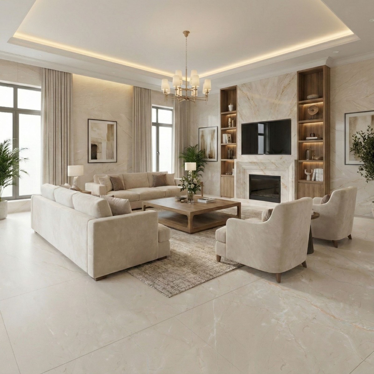 - Realistic marble effect with natural-looking veining