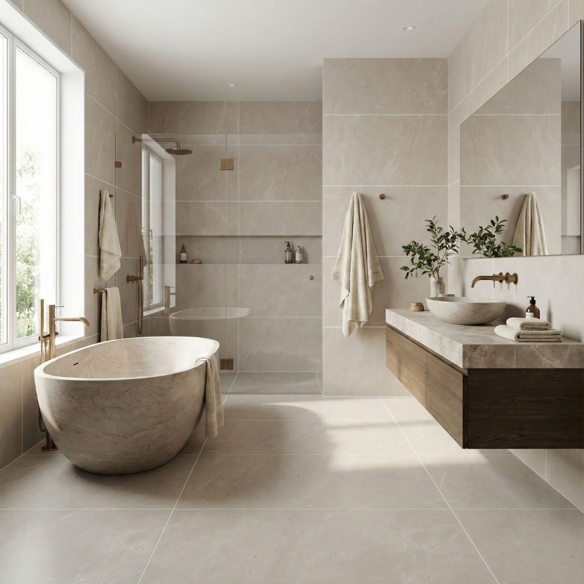 - Large format tile reduces visible grout lines for a cleaner finish
