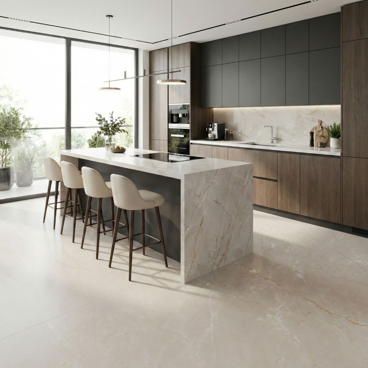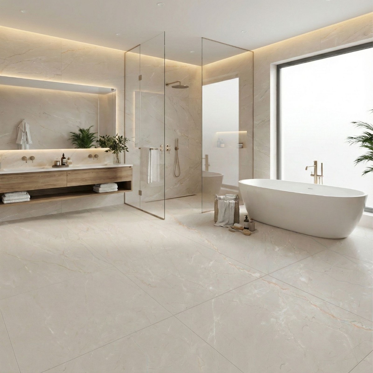 Casania Grey Concrete Effect Rectified Matt Porcelain Wall and Floor Tile is a strong choice when you want the simplicity of a concrete effect tile with a cleaner, more finished appearance. There is a stripped-back confidence to the smoky grey concrete look, giving the room texture and depth without relying on strong pattern. As a porcelain tile it is built for regular use, so you get a finish that looks design-led without becoming awkward to maintain. Rectified edges also help the finished installation look cleaner and more precise. Its 600x600mm proportions keep the layout balanced, which works well when you want clarity without the drama of an oversized slab. It makes sense in hard-working interiors where walls and floors need to speak the same design language, especially in bathrooms and kitchens.