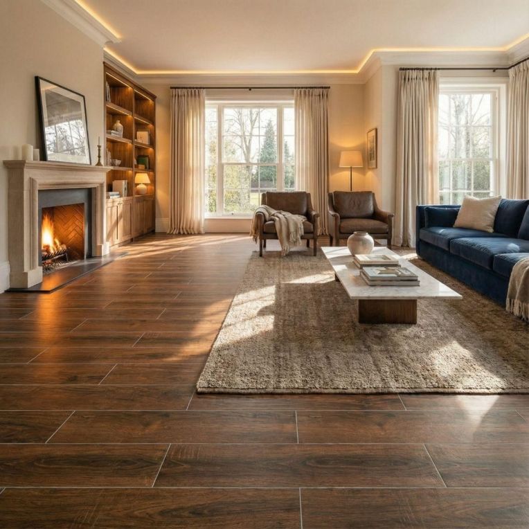Classic Oak Brown Wooden Effect Matt Porcelain Wall and Floor Tile gives the matt porcelain wall and floor tile the softer, more natural look of a wood effect tile without relying on real timber. With its wood-inspired patterning, the earth-brown surface feels softer and more organic than a plain tile while still keeping a tidy contemporary edge. Practicality is where it earns its keep: the porcelain construction is durable and straightforward to look after, which matters in hard-working rooms. The long 200x1200mm plank format draws the eye through the room, which helps floors feel more spacious and directional. It is a practical fit for interiors that need continuity, especially across floors and feature walls in modern living spaces.