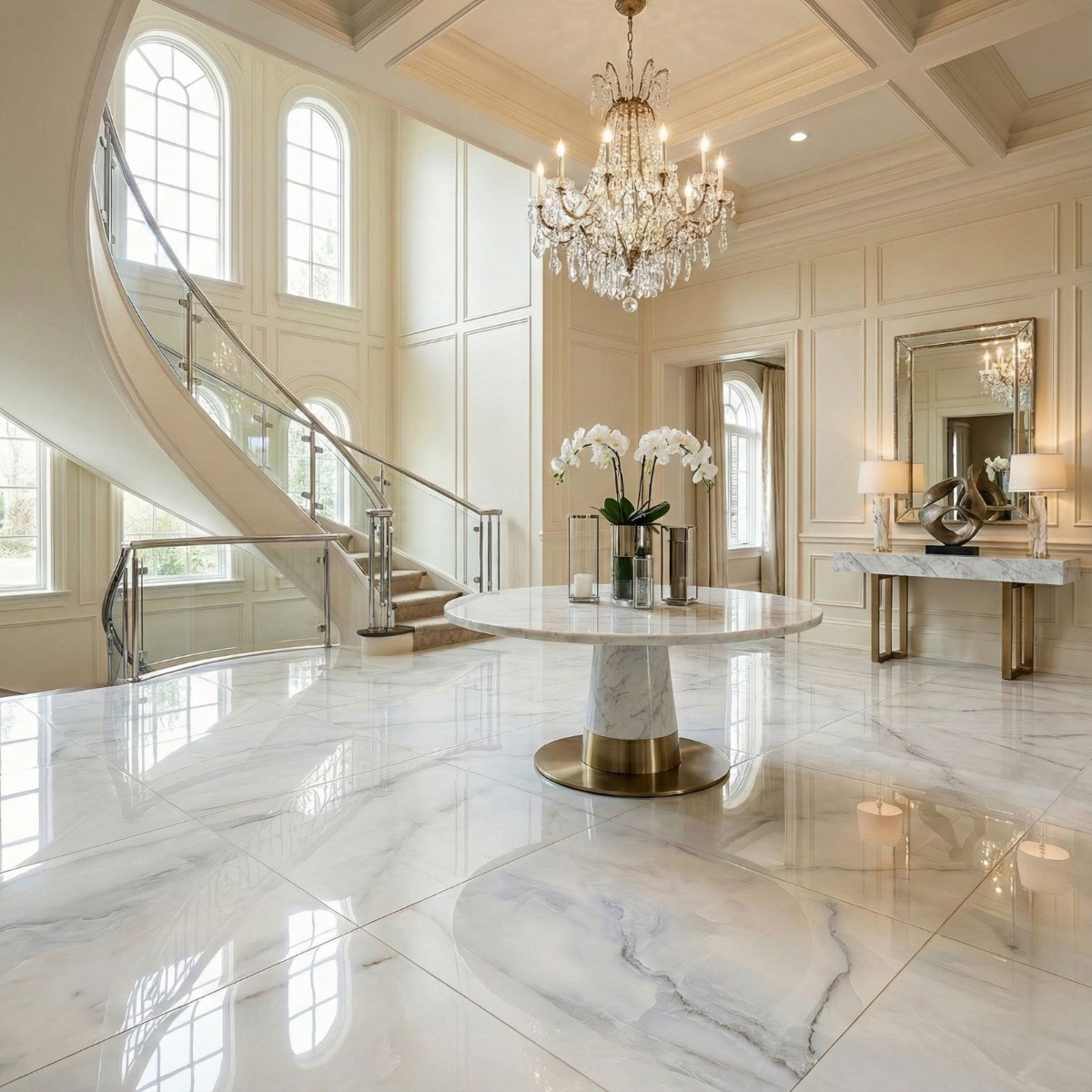 - Large format tile reduces visible grout lines for a cleaner finish