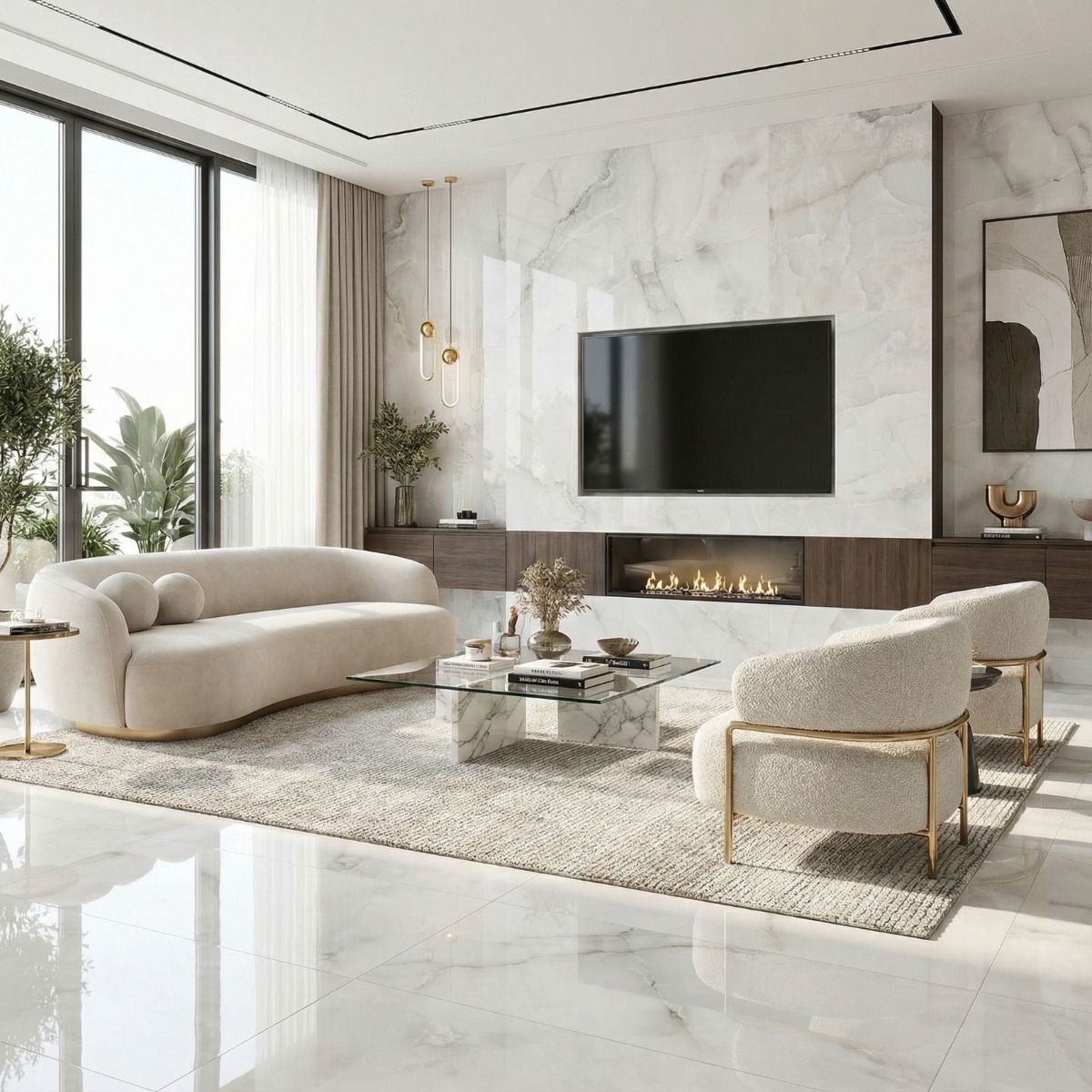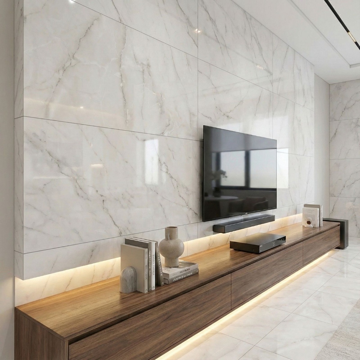Pairing tip: Keep the surrounding finishes understated with plain neutrals, soft metallic accents and very little extra pattern so the onyx movement holds the attention.