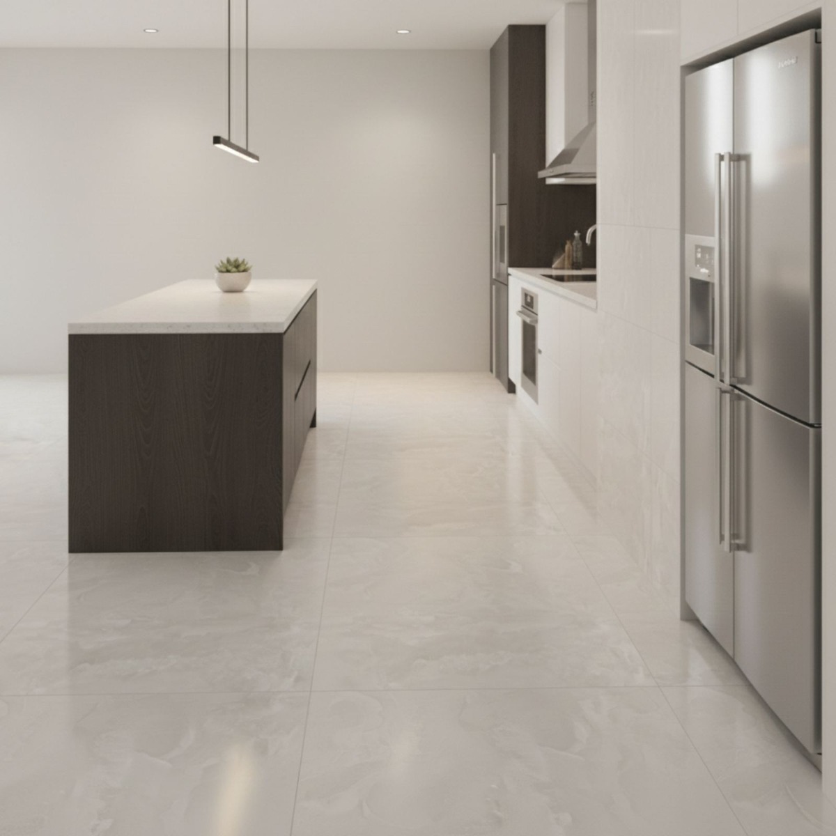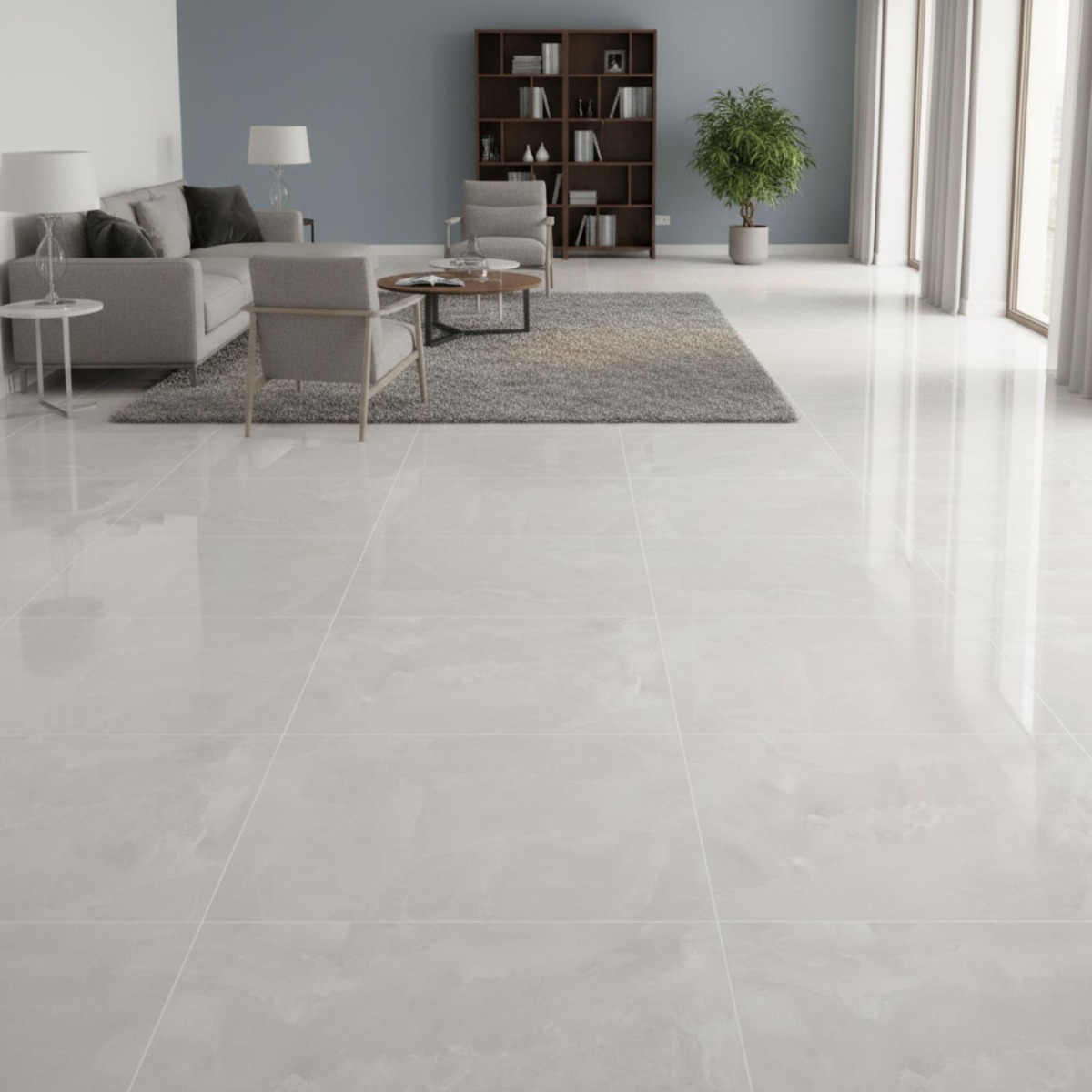 Elegant Bianco Silver Grey Onyx Effect Rectified Matt Porcelain Wall and Floor Tile brings a more statement-led mood to the matt porcelain wall and floor tile, echoing the layered character of an onyx effect tile. Its onyx effect patterning gives the grey surface more drama and flow, creating a light-catching finish that feels unapologetically statement-led. As a porcelain tile it is built for regular use, so you get a finish that looks design-led without becoming awkward to maintain. Rectified edges also help the finished installation look cleaner and more precise. In 600x1200mm, the tile has enough scale to make smaller rooms feel less chopped up and larger rooms feel more resolved. It makes sense in hard-working interiors where walls and floors need to speak the same design language, especially in bathrooms and kitchens.