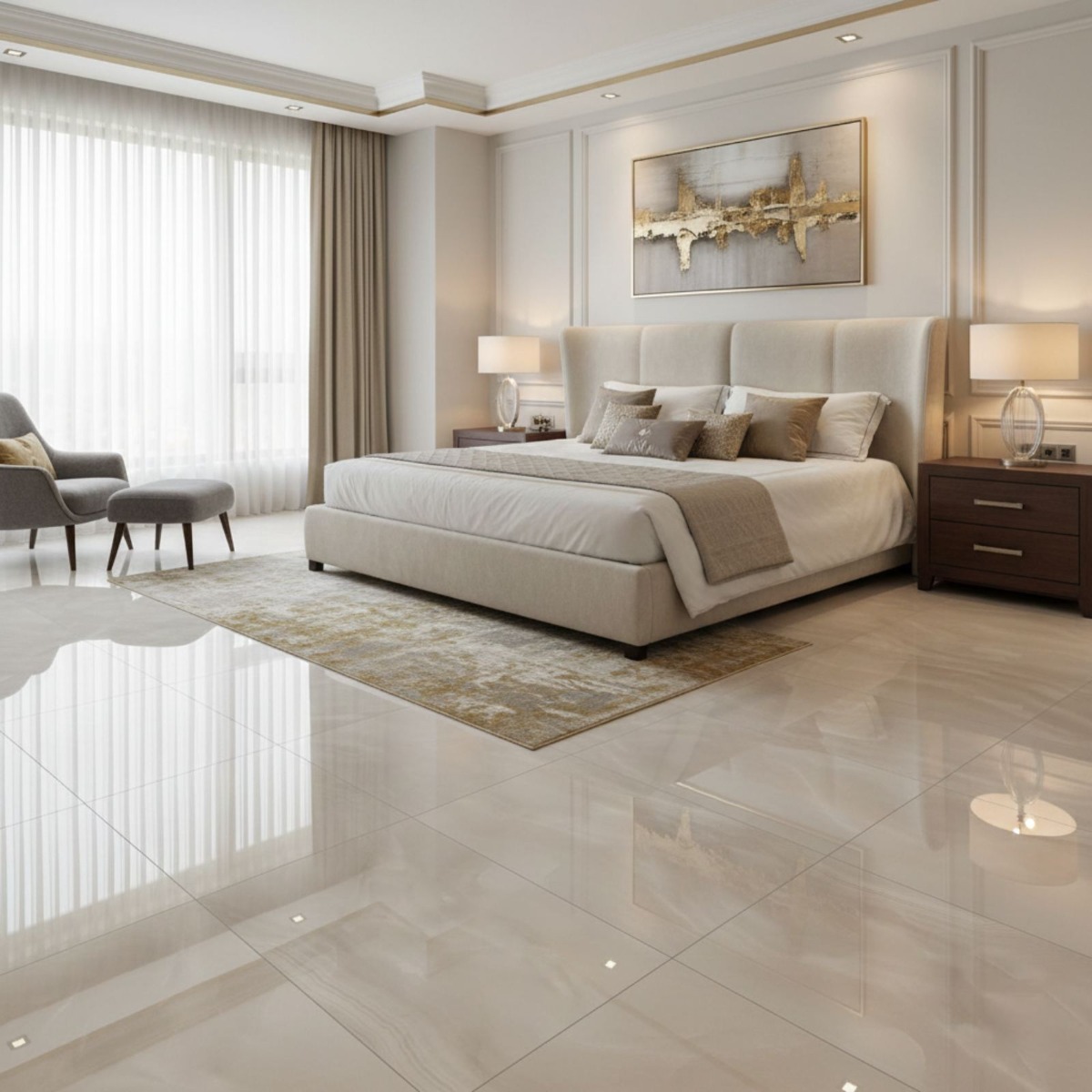 Elegant Gris Cream Onyx Effect Rectified Gloss Porcelain Wall and Floor Tile introduces the drama of an onyx effect tile in a way that still feels controlled and usable. The cream onyx effect brings a more luxurious mood, using bold movement and tonal variation to make the surface feel alive. The benefit of choosing porcelain here is that the surface stays robust and low-fuss in daily life, rather than looking good only on day one. Rectified edges also help the finished installation look cleaner and more precise. The scale of the 600x1200mm format gives the room a more open read and reduces visual interruption across larger runs. Because it works on both walls and floors, it is easy to carry through bathrooms, kitchens and circulation spaces for a more joined-up interior.