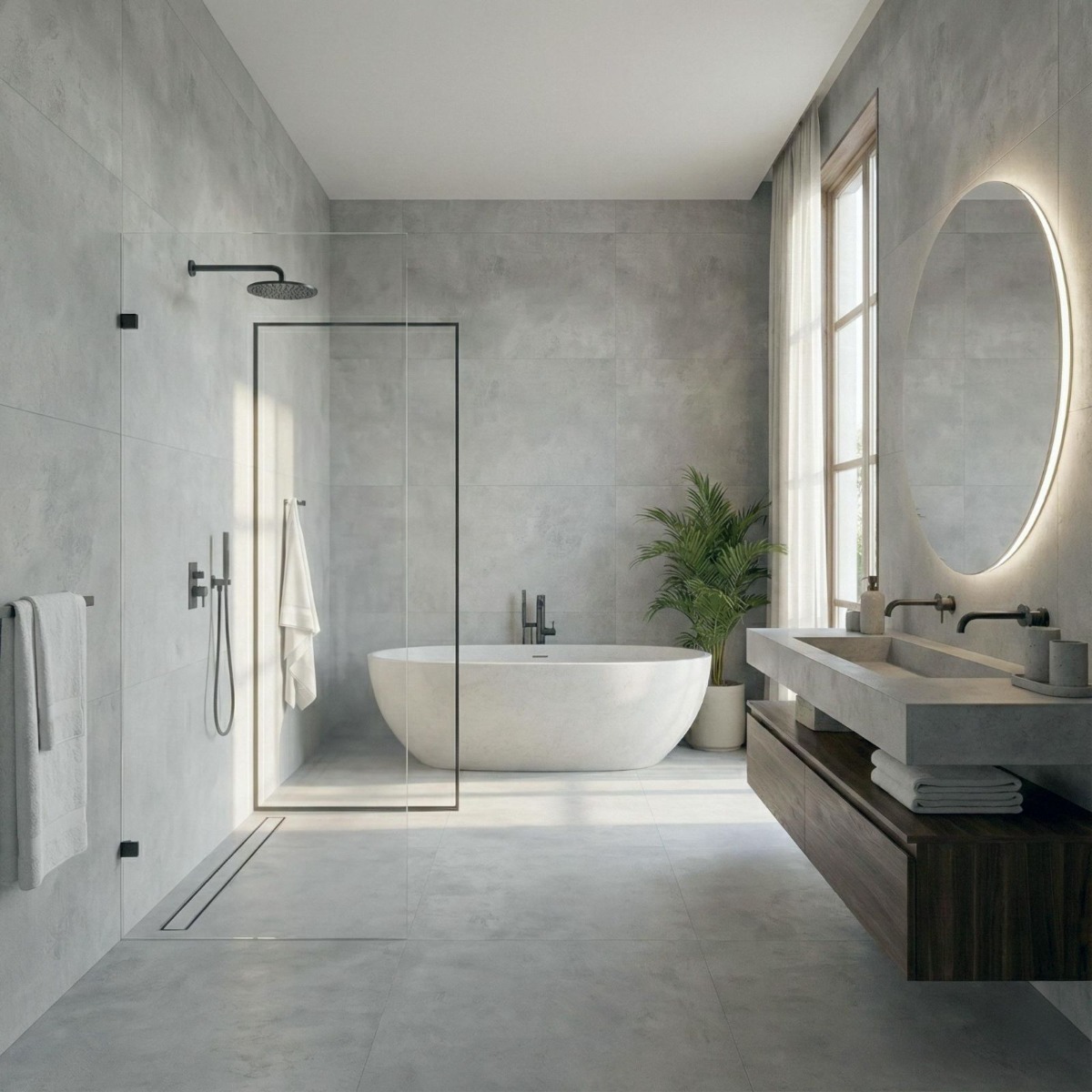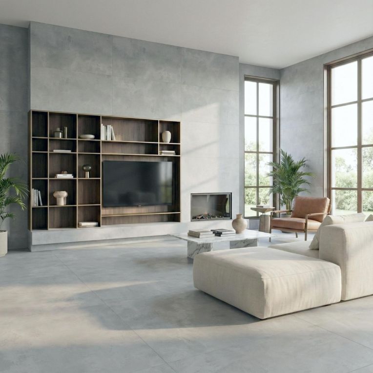 Euro Elegant Grey Concrete Effect Matt Porcelain Wall and Floor Tile takes the everyday matt porcelain wall and floor tile and gives it the understated edge of a concrete effect tile. The concrete effect treatment gives the smoky grey surface an urban, design-led feel that still reads warm enough for residential spaces. The benefit of choosing porcelain here is that the surface stays robust and low-fuss in daily life, rather than looking good only on day one. The matt surface keeps the overall result grounded and easier to style day to day. Because it comes in 600x1200mm, the layout feels broader and calmer, which is especially useful when you want a more seamless finish. It makes sense in hard-working interiors where walls and floors need to speak the same design language, especially in bathrooms and kitchens.