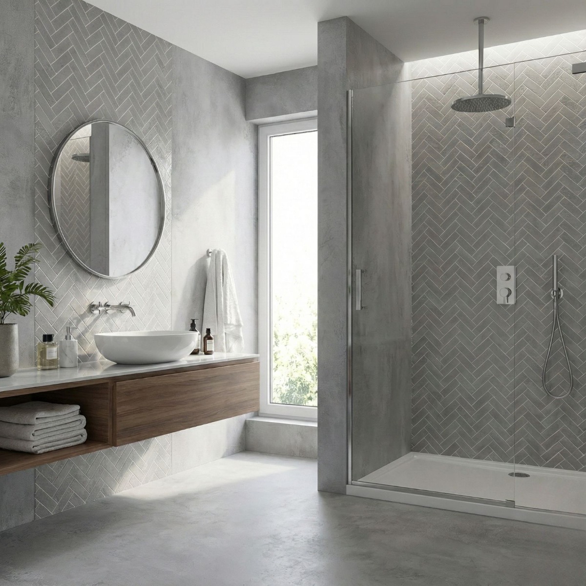 - Concrete effect styling for a clean, modern finish