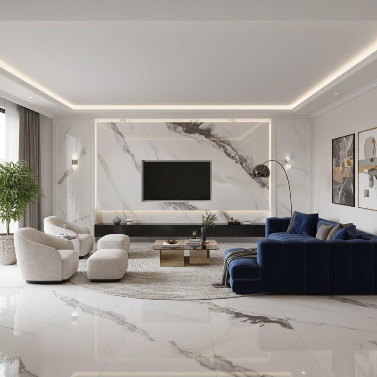 - Realistic marble effect with natural-looking veining