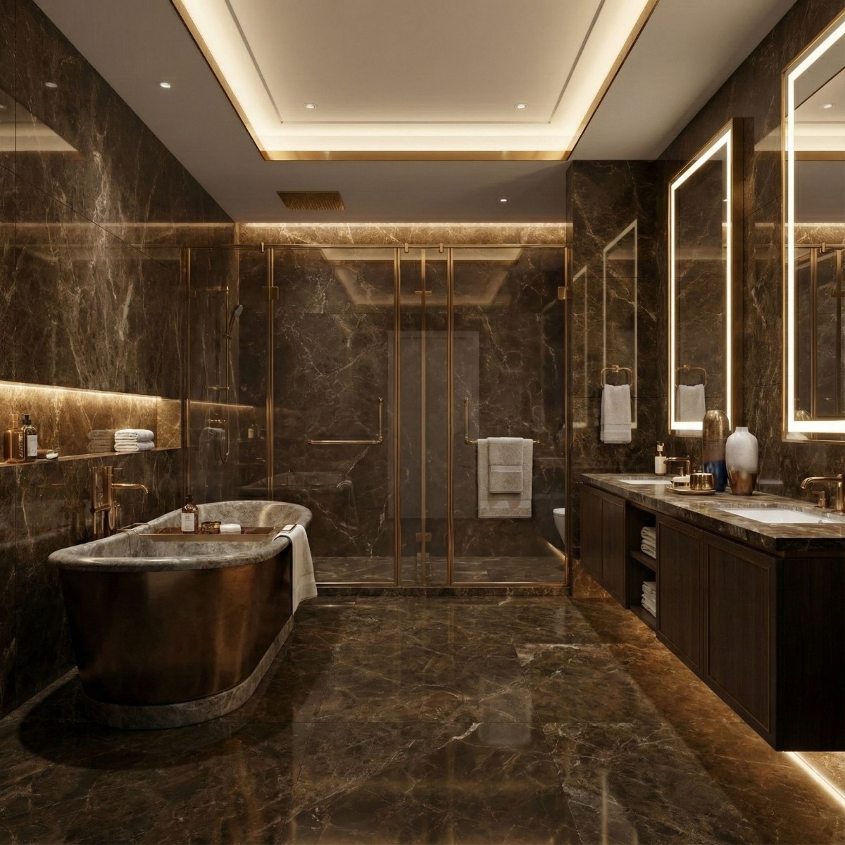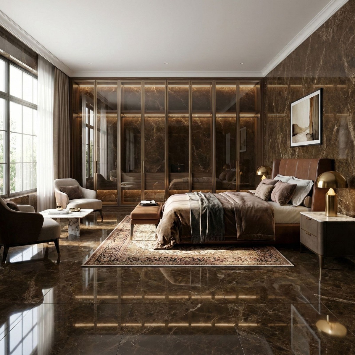 Great Emperdor Brown Marble Effect High Gloss Porcelain Wall and Floor Tile pushes the high gloss porcelain wall and floor tile in a more refined direction, with the appeal of a marble effect tile and less of the upkeep that natural stone can demand. Its marble effect detailing adds natural-looking variation across the brown background, and the high gloss finish shapes that movement in a way that feels polished rather than fussy. As a porcelain tile it is built for regular use, so you get a finish that looks design-led without becoming awkward to maintain. The 600x1200mm large format helps walls or floors read more cleanly, with fewer grout lines breaking up the surface. Because it works on both walls and floors, it is easy to carry through bathrooms, kitchens and circulation spaces for a more joined-up interior.