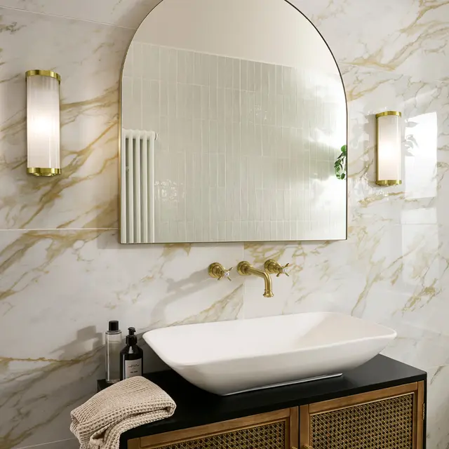 Marble-effect tiles are porcelain tiles printed and glazed to replicate the veining and colour of natural marble. They deliver a luxury look at a fraction of the cost and with far better practical performance — no sealing required, no staining, no acid damage.