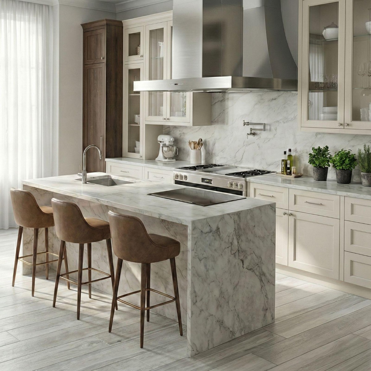 Pairing tip: Keep the rest of the room simple with off-whites and stone or linen textures so the wood effect adds warmth without visual clutter.