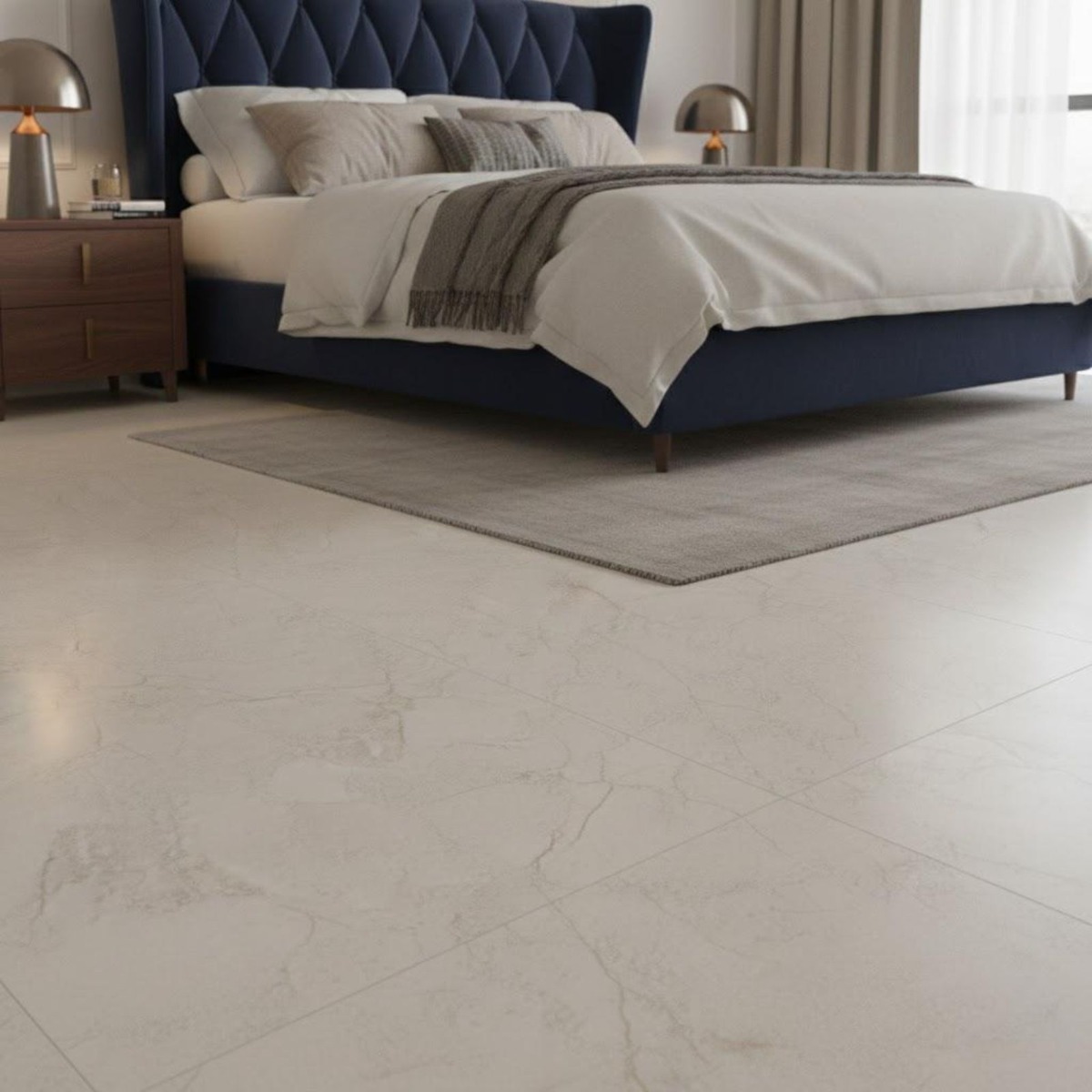 - Generous tile size helps bigger rooms feel more open and less broken up