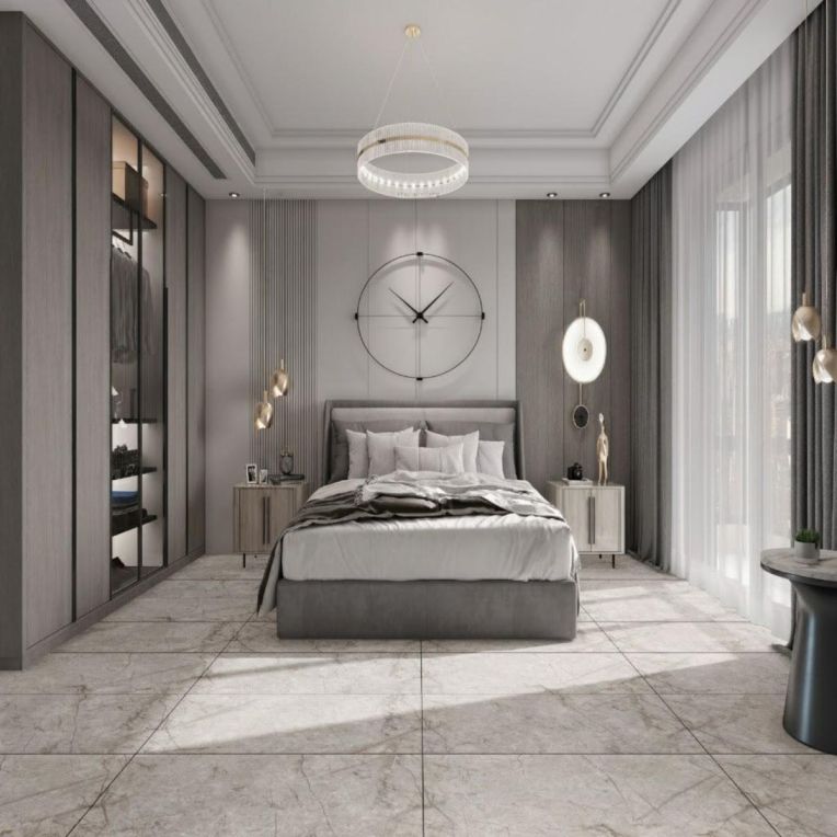 - Concrete-inspired surface with a simple architectural feel