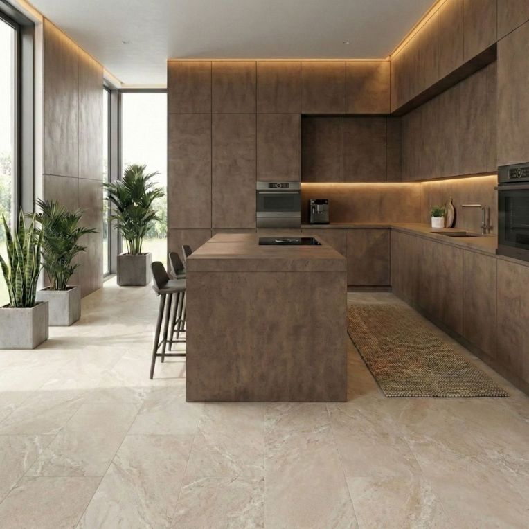 Jupiter Rock Beige Concrete Effect Rectified Matt Porcelain Wall and Floor Tile gives the matt porcelain wall and floor tile a calm architectural feel, borrowing the look of a concrete effect tile without making the room feel cold. The concrete effect treatment gives the warm beige surface an urban, design-led feel that still reads warm enough for residential spaces. As a porcelain tile it is built for regular use, so you get a finish that looks design-led without becoming awkward to maintain. Rectified edges also help the finished installation look cleaner and more precise. The proportions of the 300x600mm size make it a useful all-rounder, especially where you want definition but not heavy visual segmentation. Because it works on both walls and floors, it is easy to carry through bathrooms, kitchens and circulation spaces for a more joined-up interior.