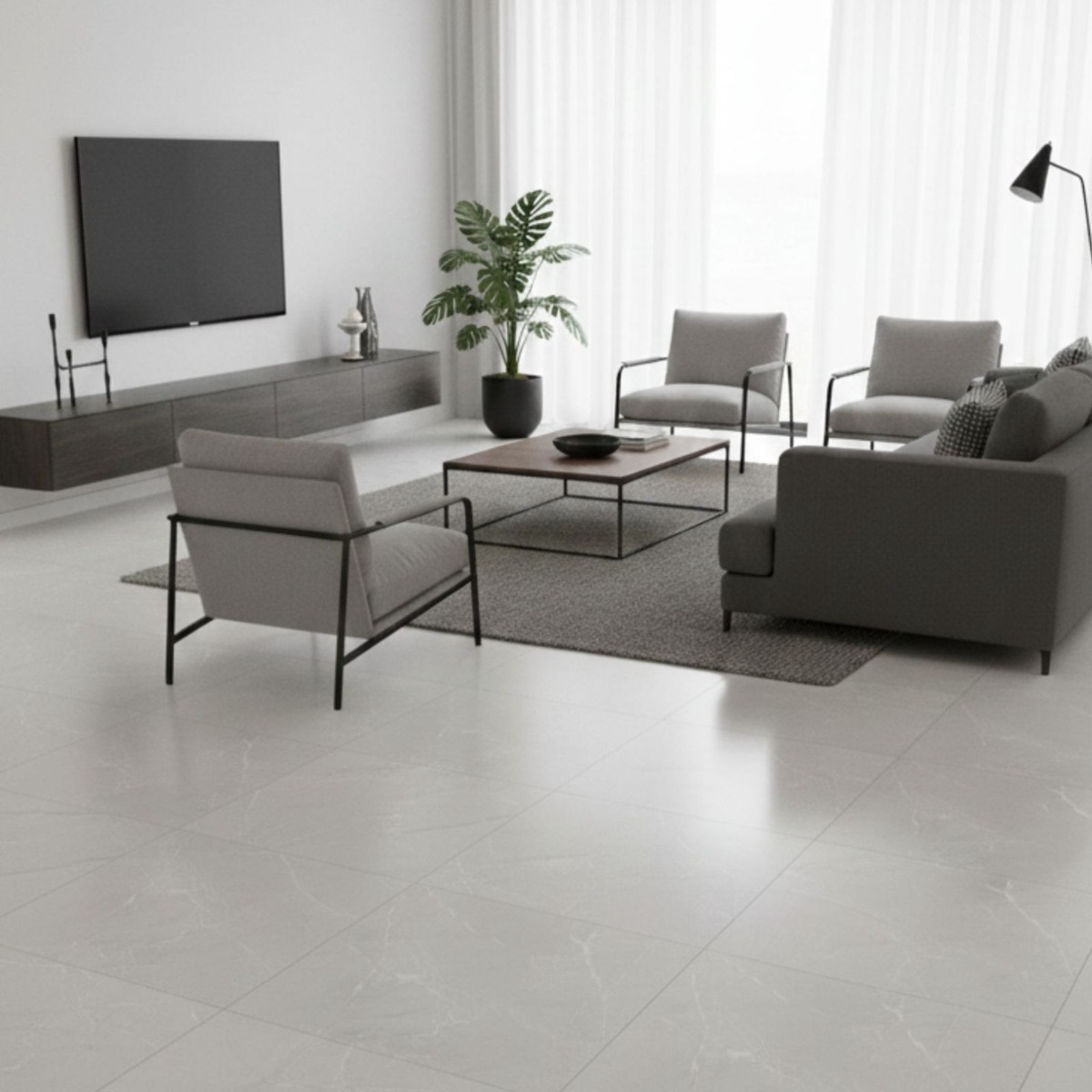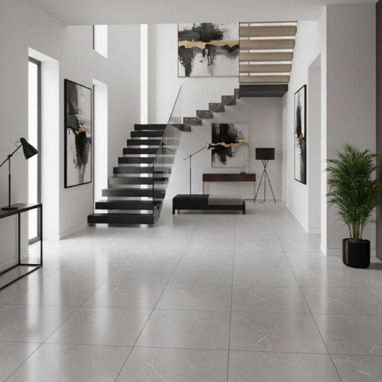 Marlin Grey Marble Effect Rectified Matt Porcelain Wall and Floor Tile is an easy way to bring in the look of a marble effect tile without tipping the room into something overly formal. Its marble effect detailing adds natural-looking variation across the mid-grey background, and the matt finish shapes that movement in a way that feels polished rather than fussy. As a porcelain tile it is built for regular use, so you get a finish that looks design-led without becoming awkward to maintain. Rectified edges also help the finished installation look cleaner and more precise. Its 600x600mm proportions keep the layout balanced, which works well when you want clarity without the drama of an oversized slab. It is a strong fit for bathrooms, kitchens and connecting living spaces where using the same tile across walls and floors helps the scheme feel more unified.