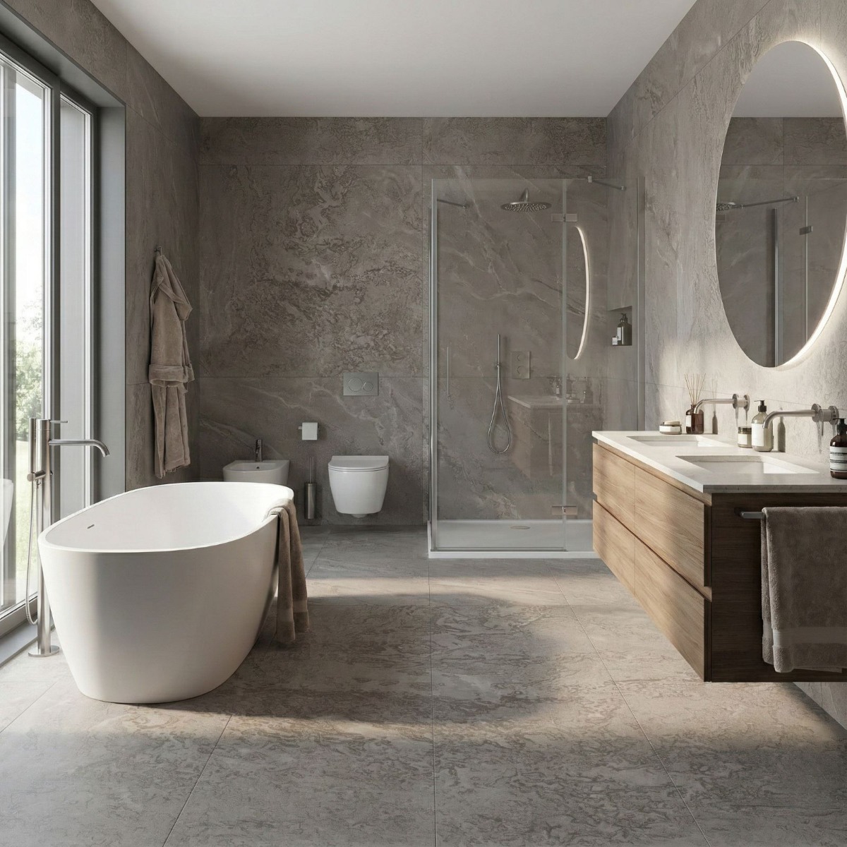 Mistic Grigeo Brown Concrete Effect Rectified Carving Porcelain Wall and Floor Tile gives the carving porcelain wall and floor tile a calm architectural feel, borrowing the look of a concrete effect tile without making the room feel cold. The concrete effect treatment gives the brown surface an urban, design-led feel that still reads warm enough for residential spaces. The porcelain body gives it the kind of dense, easy-care surface that works well in everyday spaces. Rectified edges also help the finished installation look cleaner and more precise. The carving finish adds a little more surface character without making upkeep feel complicated. Its 600x600mm proportions keep the layout balanced, which works well when you want clarity without the drama of an oversized slab. This works well in busier family spaces, from kitchens to entrance areas, where the finish has to earn its keep as well as look good.