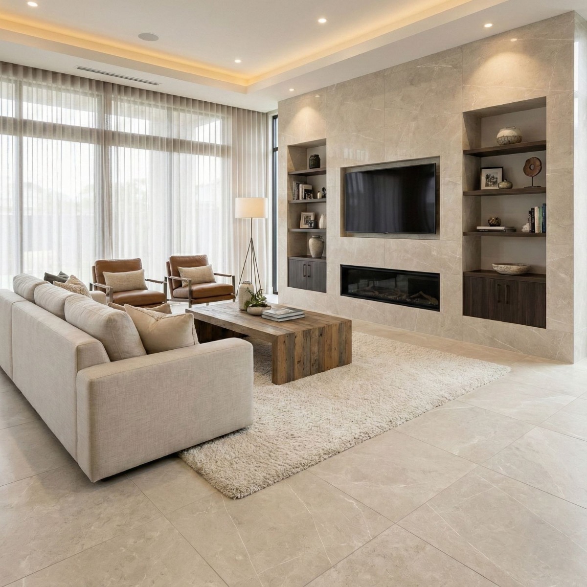 - Square format works well across medium and larger rooms