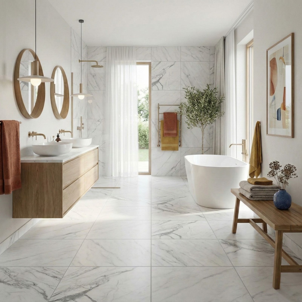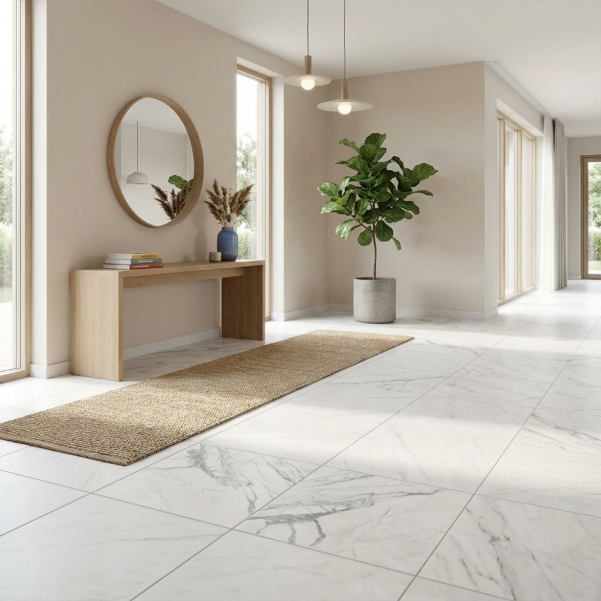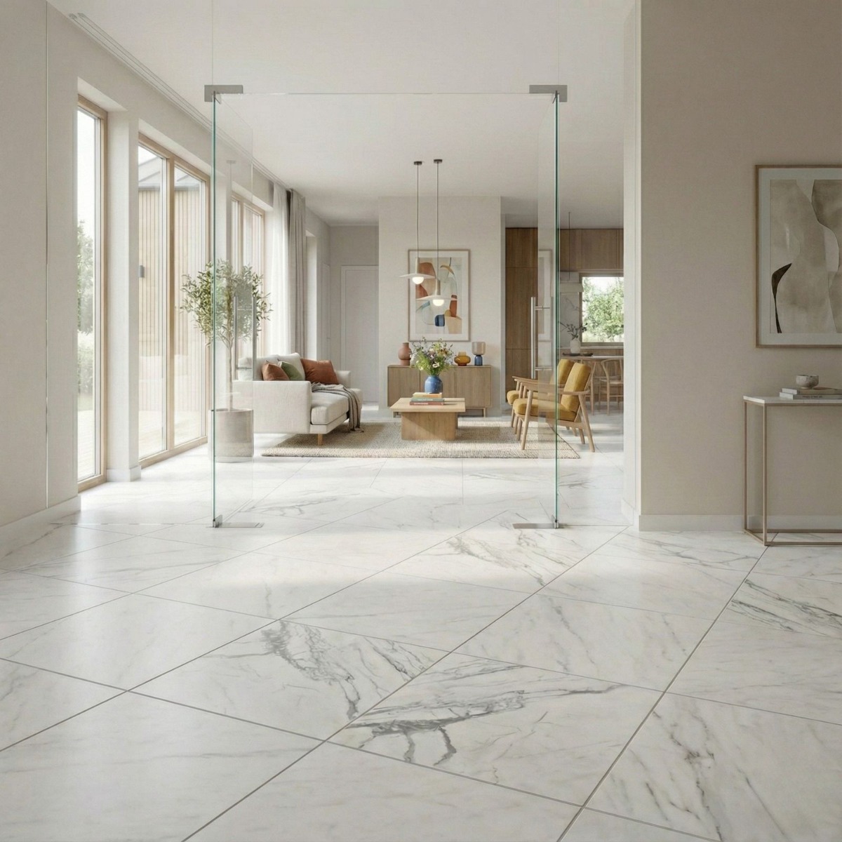 Nordico White Marble Effect Rectified Gloss Porcelain Wall and Floor Tile offers the elegance of a marble effect tile in a finish that still feels practical to live with. The mix of clean white shading and marble-inspired patterning gives the tile a premium feel, and the gloss finish stops it from looking one-dimensional. Practicality is where it earns its keep: the porcelain construction is durable and straightforward to look after, which matters in hard-working rooms. Rectified edges also help the finished installation look cleaner and more precise. The 600x600mm square format creates a tidy, even grid that feels modern without becoming stark. It makes sense in hard-working interiors where walls and floors need to speak the same design language, especially in bathrooms and kitchens.