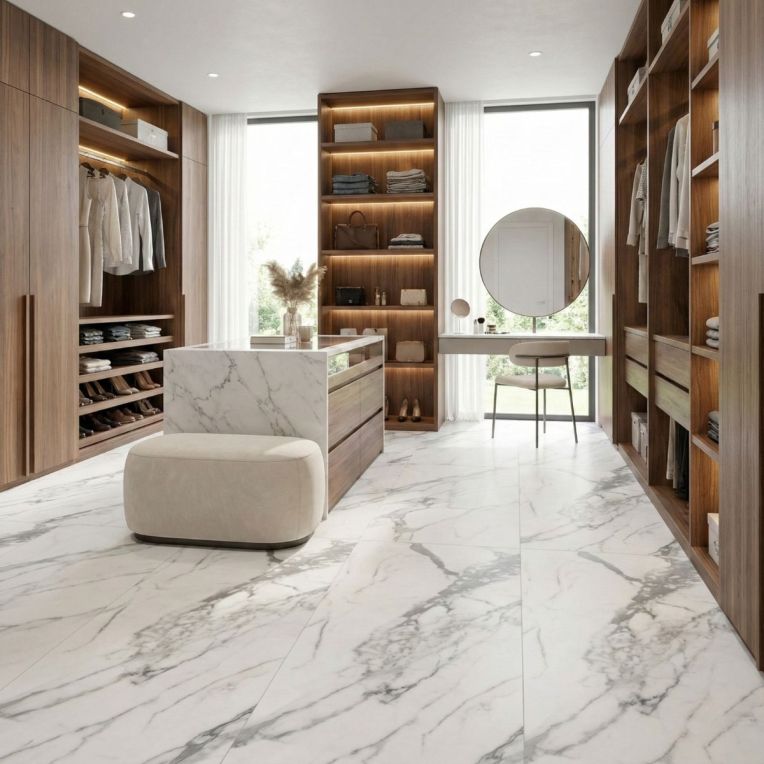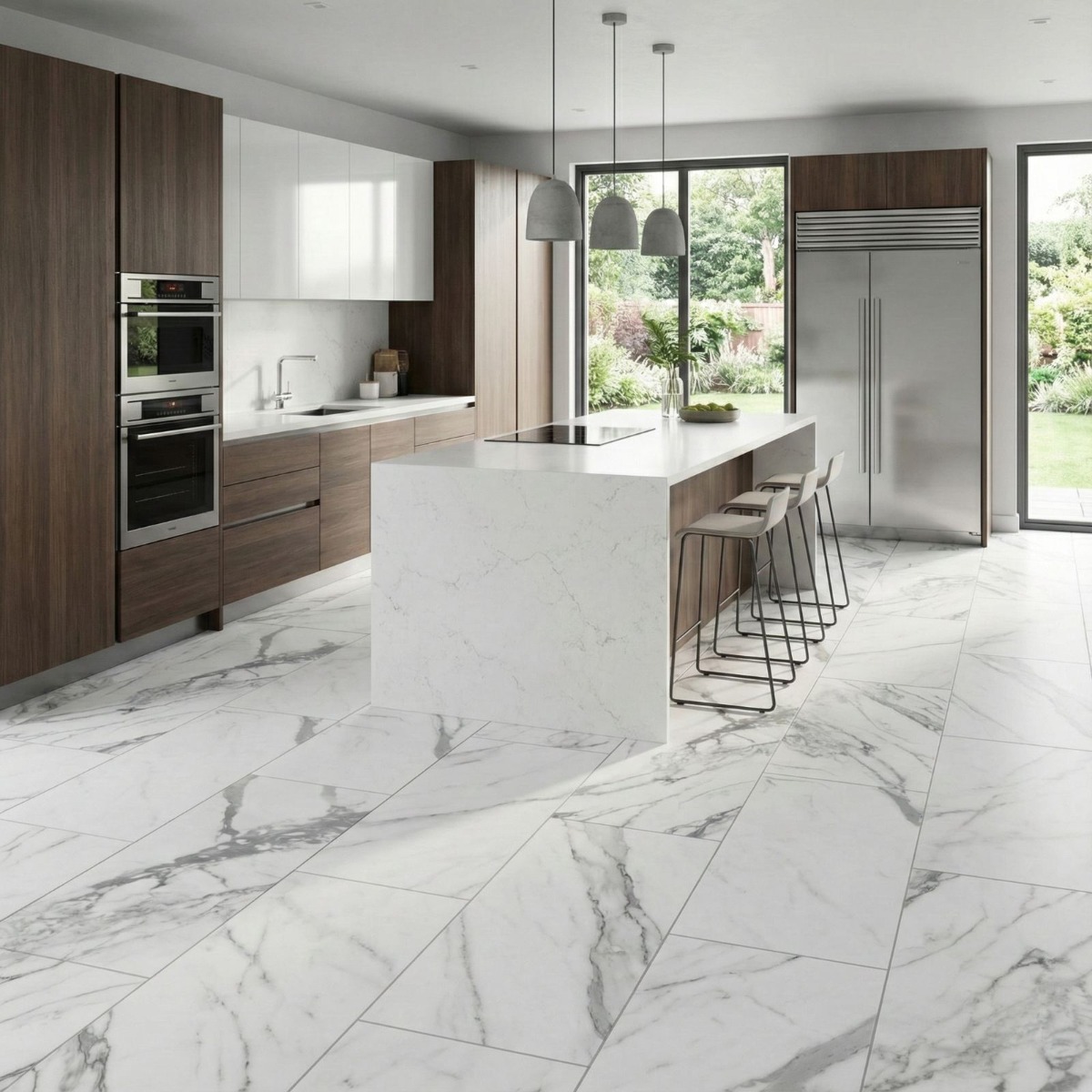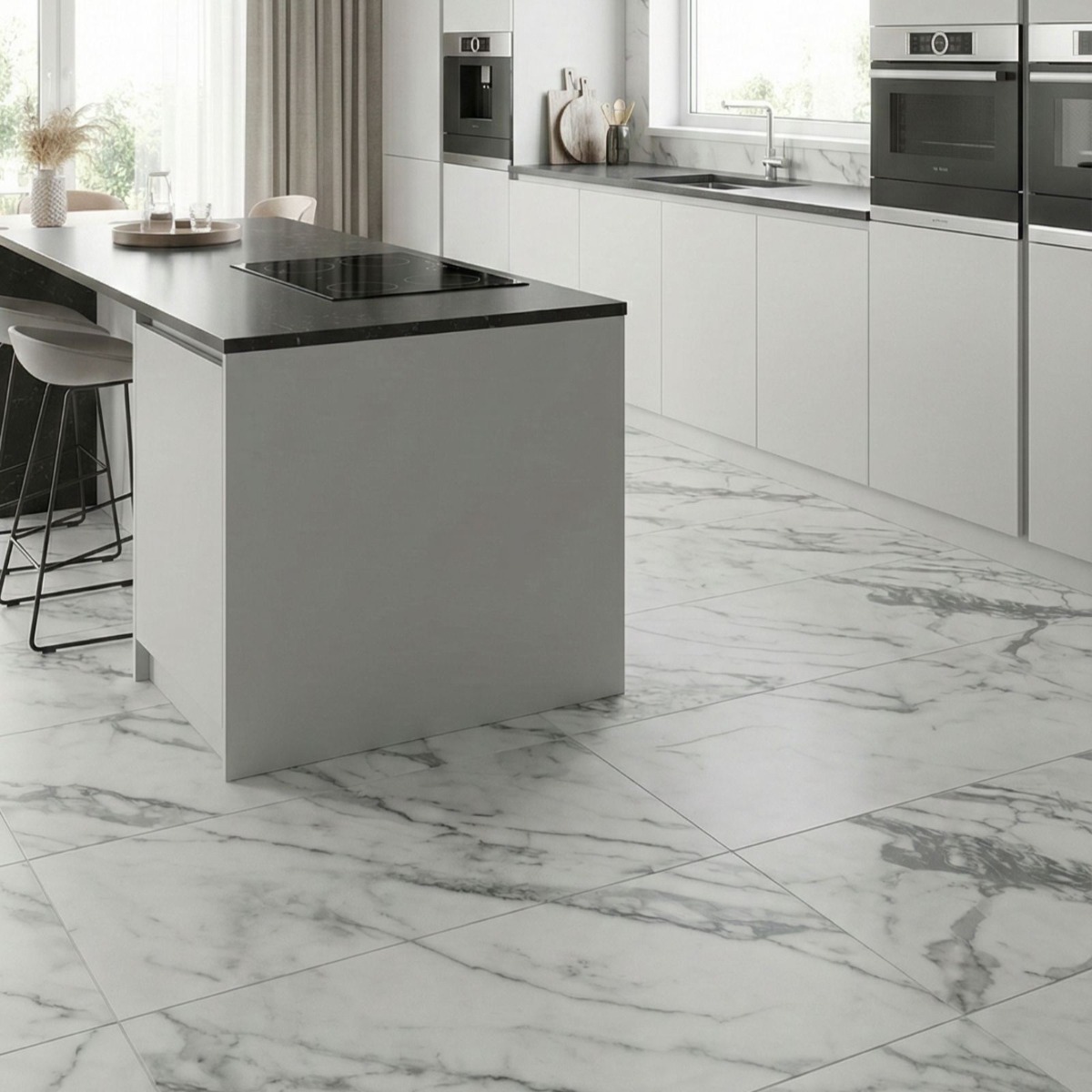 Nordico White Marble Effect Rectified Matt Porcelain Wall and Floor Tile pushes the matt porcelain wall and floor tile in a more refined direction, with the appeal of a marble effect tile and less of the upkeep that natural stone can demand. You get the familiar depth of a marble effect tile here, with soft white tones and subtle veining that make the surface feel layered and refined. Practicality is where it earns its keep: the porcelain construction is durable and straightforward to look after, which matters in hard-working rooms. Rectified edges also help the finished installation look cleaner and more precise. In 600x1200mm, the tile has enough scale to make smaller rooms feel less chopped up and larger rooms feel more resolved. It makes sense in hard-working interiors where walls and floors need to speak the same design language, especially in bathrooms and kitchens.