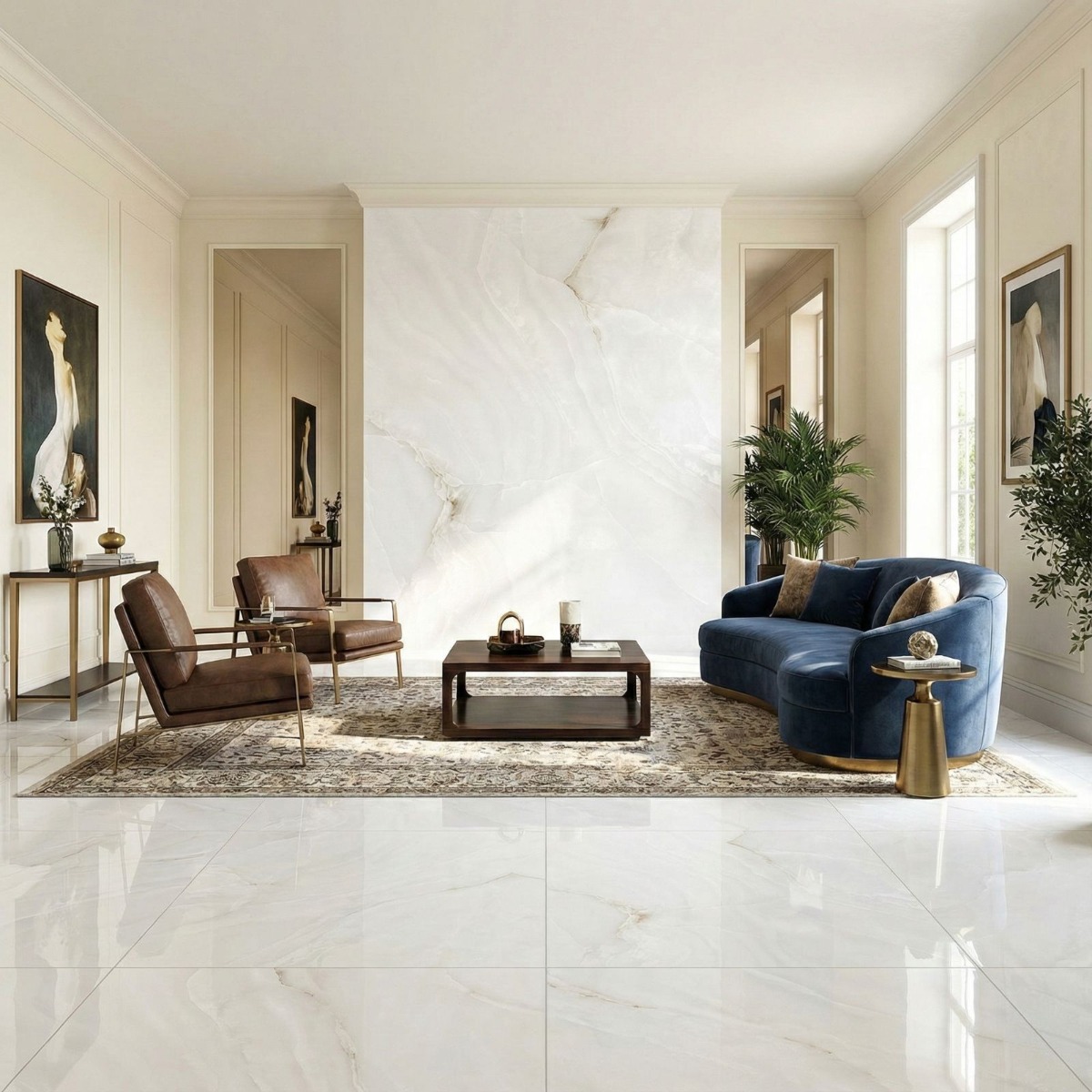 Panello Natural Grey Onyx Effect Gloss Porcelain Wall and Floor Tile