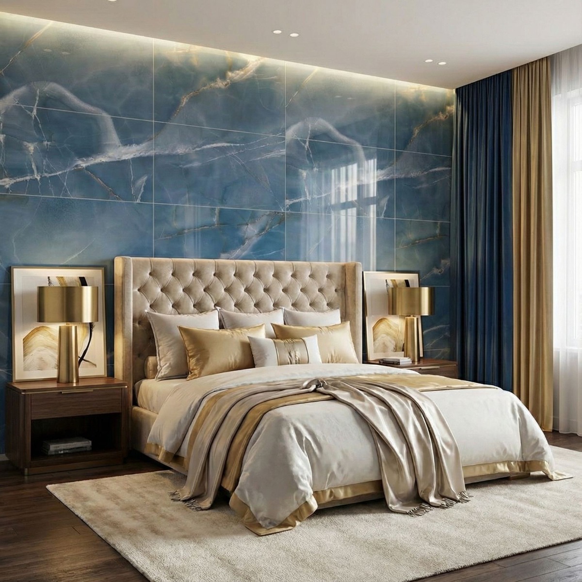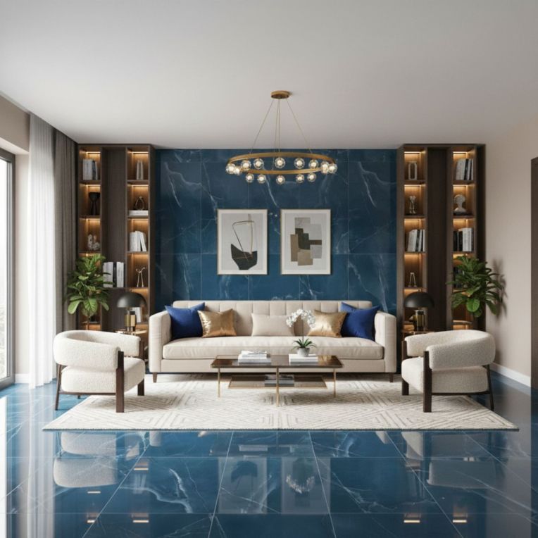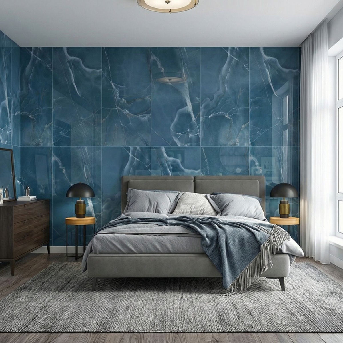Prime Viola Blue Onyx Effect Rectified Gloss Porcelain Wall and Floor Tile introduces the drama of an onyx effect tile in a way that still feels controlled and usable. The onyx-inspired movement runs through the mineral blue tones in a way that feels fluid and expressive, especially across larger expanses. As a porcelain tile it is built for regular use, so you get a finish that looks design-led without becoming awkward to maintain. Rectified edges also help the finished installation look cleaner and more precise. The scale of the 600x1200mm format gives the room a more open read and reduces visual interruption across larger runs. Use it in bathrooms, kitchens or open-plan rooms when you want one surface to tie different zones together without losing visual interest.