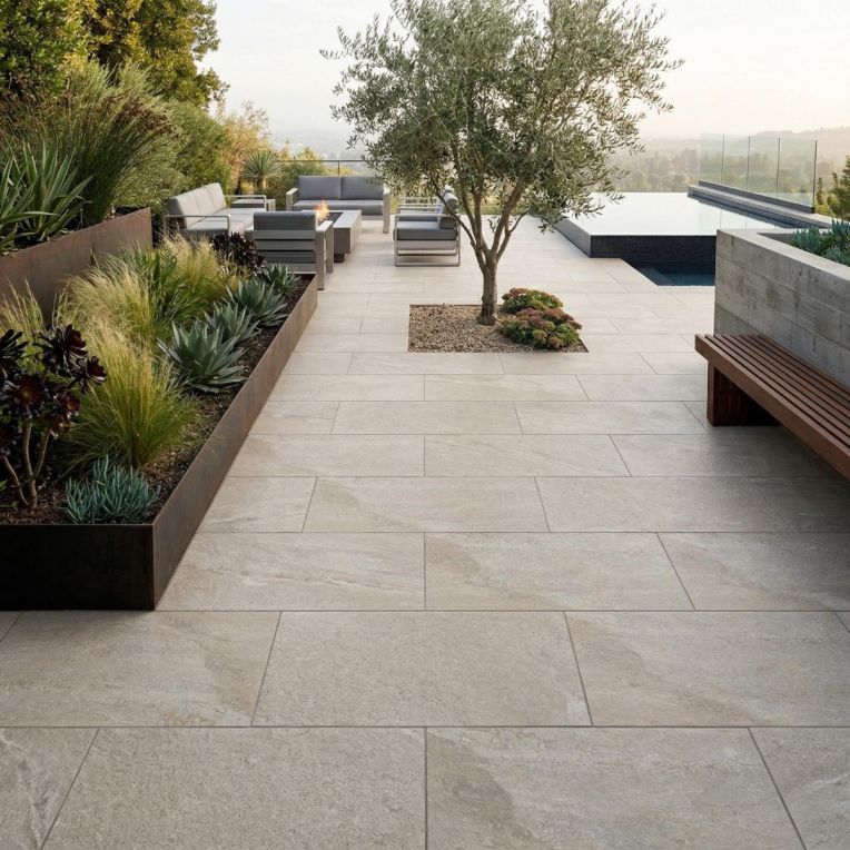 Rastone Beige Large Matt Porcelain Outdoor Paving Slab Tiles works well when the brief is a porcelain outdoor paver that feels current, practical and visually balanced. The overall look is restrained but not flat, using beige tones and a matt surface to add subtle character. It is not just about looks: the porcelain build is well suited to outdoor wear, so the tile keeps its cleaner finish without demanding constant upkeep. Rectified edges also help the paving look neater once installed. In 600x900mm, the tile stretches the eye slightly and reduces visual clutter without losing all sense of a tiled pattern. This is well suited to garden settings that need a smarter surface underfoot, from patios through to more defined entertaining zones.