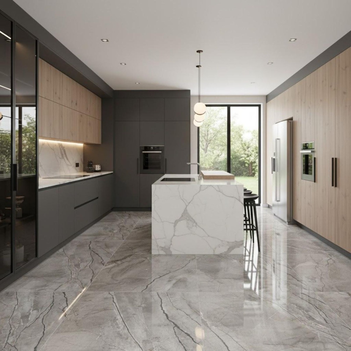Pairing tip: Use plain white or pale stone companions with restrained timber or black details so the veining has room to stand out.