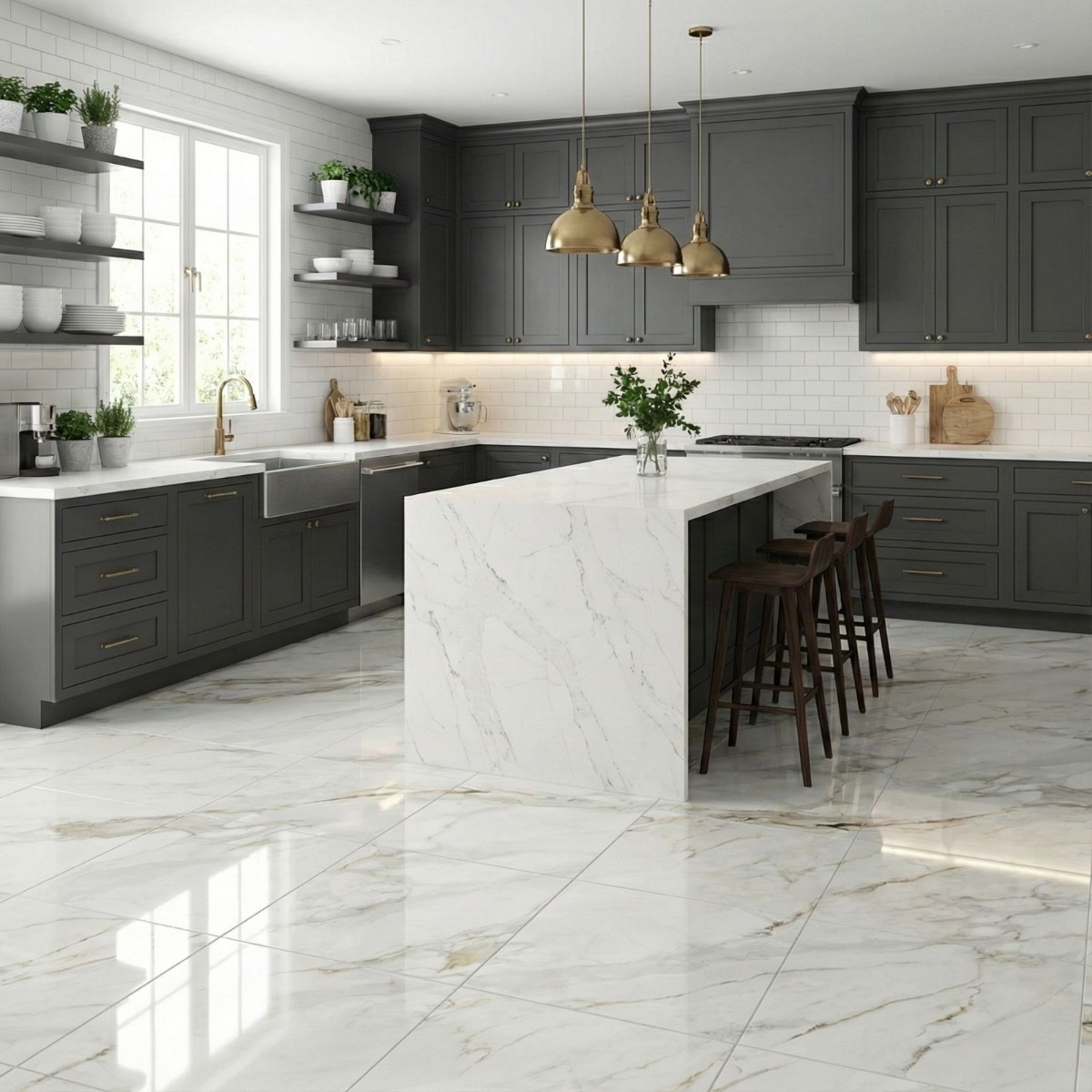 Royal Calcatta White Marble Effect Rectified Gloss Porcelain Wall and Floor Tile is an easy way to bring in the look of a marble effect tile without tipping the room into something overly formal. The clean white base and marble-style veining come alive under the gloss finish, helping light move around the room and giving the surface a more polished feel. Practicality is where it earns its keep: the porcelain construction is durable and straightforward to look after, which matters in hard-working rooms. Rectified edges also help the finished installation look cleaner and more precise. The 600x600mm square format creates a tidy, even grid that feels modern without becoming stark. It makes sense in hard-working interiors where walls and floors need to speak the same design language, especially in bathrooms and kitchens.