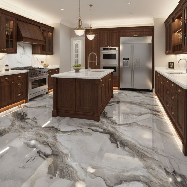 Pairing tip: Pair it with crisp white walls, soft grey grout and simple timber or charcoal accents so the marble effect remains the focal point.