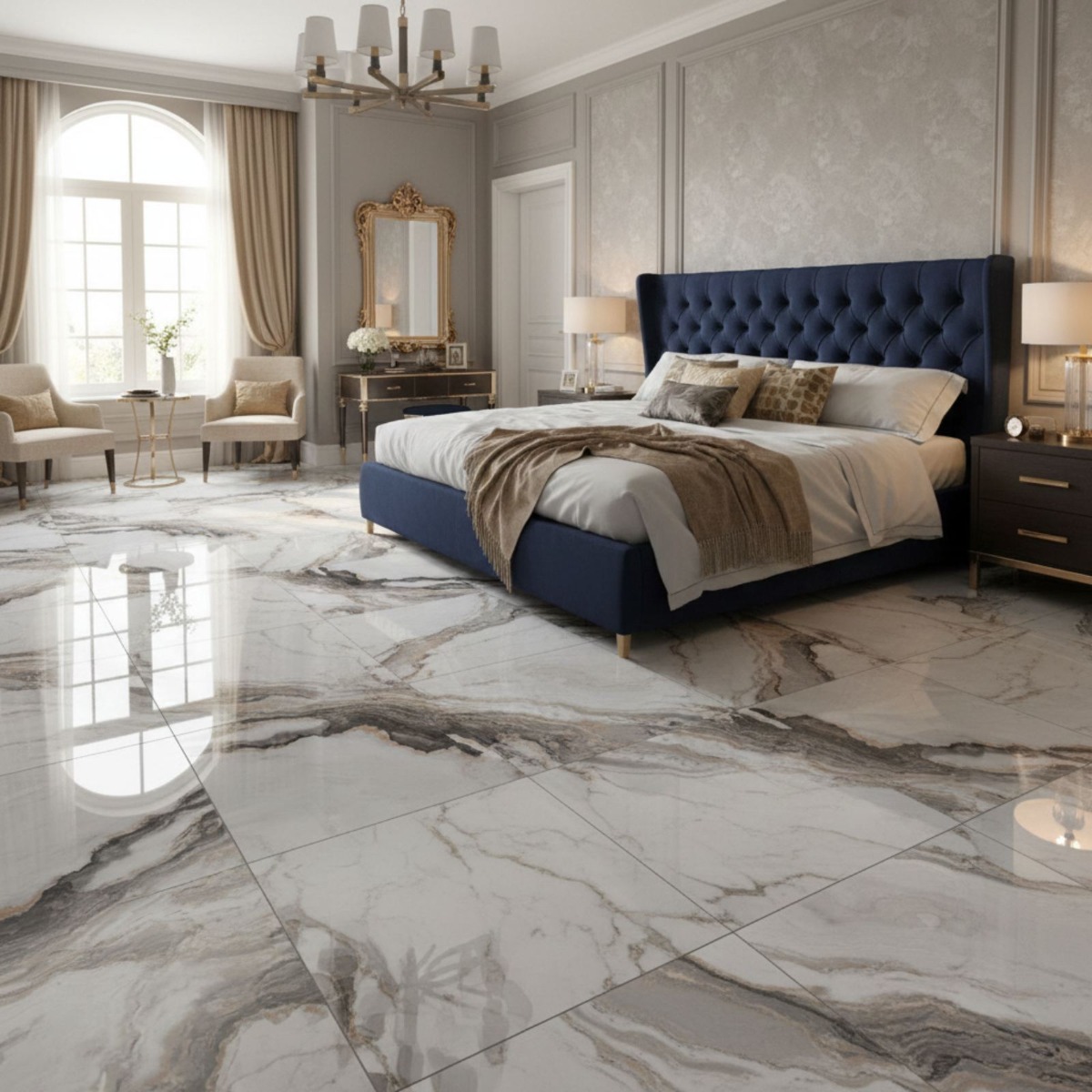 Royal Palermo Statement Grey Marble Effect Rectified Gloss Porcelain Wall and Floor Tile