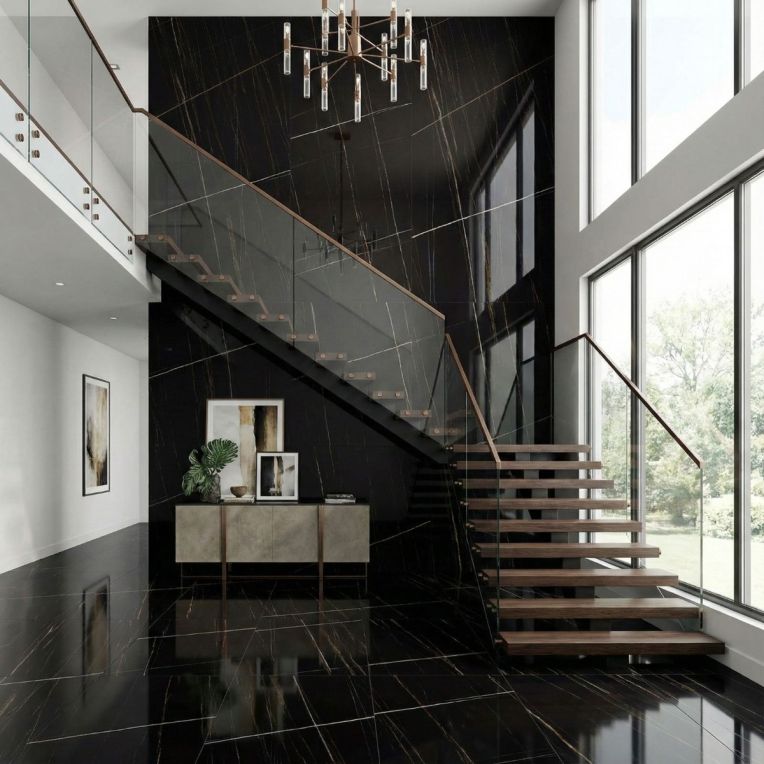 Saint Laurent Black Marble Effect Rectified High Gloss Porcelain Wall and Floor Tile gives the classic marble effect tile look a more polished, usable edge for everyday interiors. You get the familiar depth of a marble effect tile here, with deep black tones and subtle veining that make the surface feel layered and refined. The porcelain body gives it the kind of dense, easy-care surface that works well in everyday spaces. Rectified edges also help the finished installation look cleaner and more precise. The reflective finish is also useful where you want to bounce a bit more light around the room. Because it comes in 600x1200mm, the layout feels broader and calmer, which is especially useful when you want a more seamless finish. Use it in bathrooms, kitchens or open-plan rooms when you want one surface to tie different zones together without losing visual interest.
