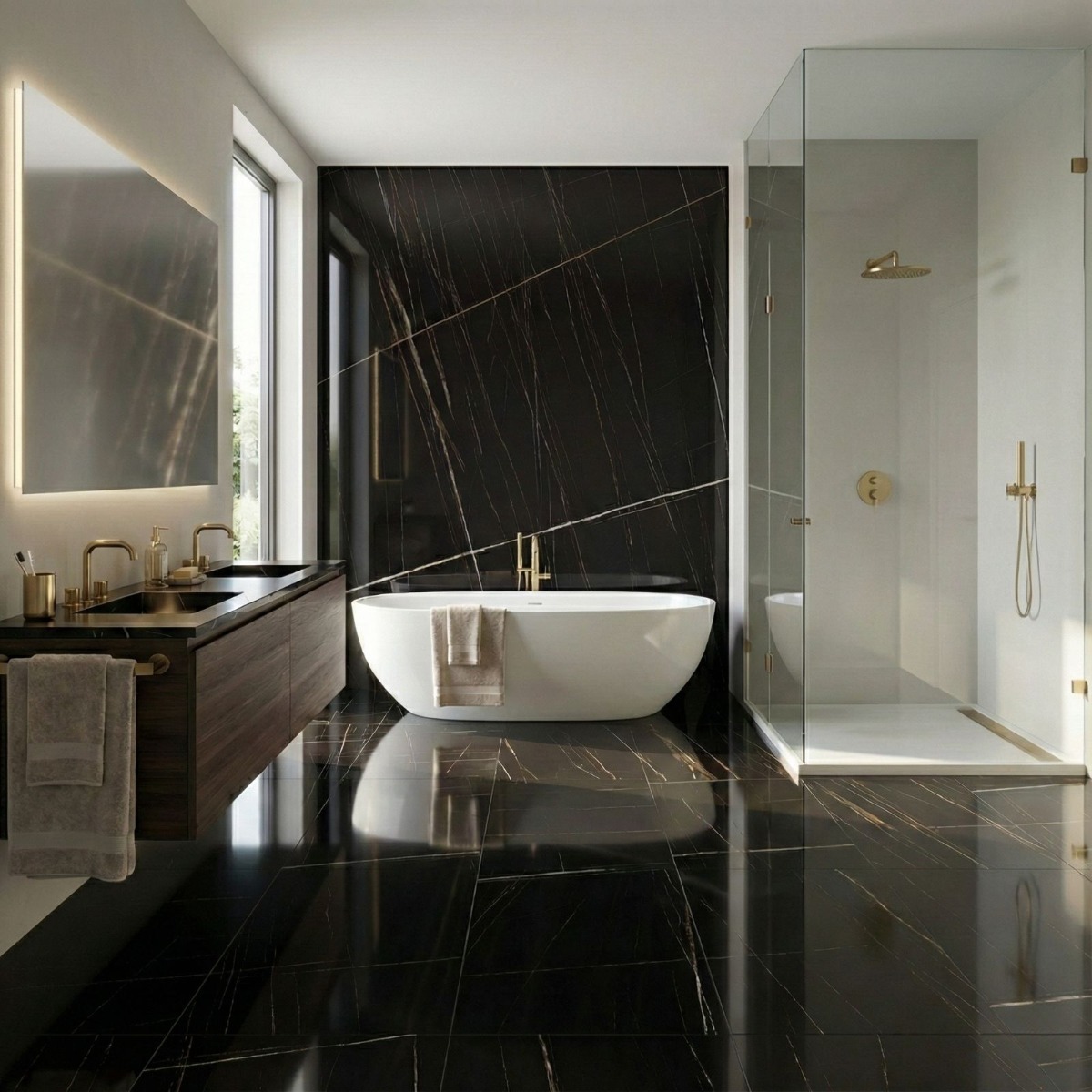 Pairing tip: Use plain off-white or pale grey supporting tiles, a lighter grout, and restrained brass or matte black accents so the veining stays centre stage.