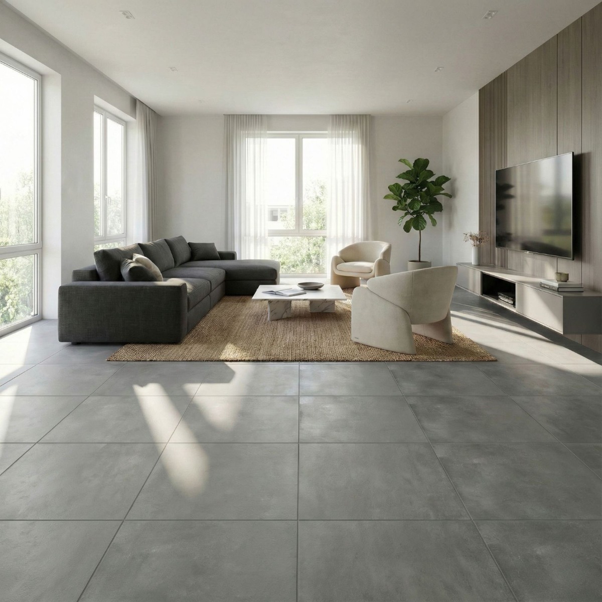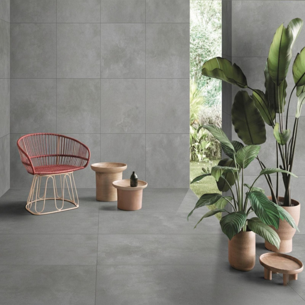 Silver Grey Concrete Effect Rectified Matt Porcelain Wall and Floor Tile is a strong choice when you want the simplicity of a concrete effect tile with a cleaner, more finished appearance. The concrete effect treatment gives the grey surface an urban, design-led feel that still reads warm enough for residential spaces. Practicality is where it earns its keep: the porcelain construction is durable and straightforward to look after, which matters in hard-working rooms. Rectified edges also help the finished installation look cleaner and more precise. The 600x600mm square format creates a tidy, even grid that feels modern without becoming stark. It makes sense in hard-working interiors where walls and floors need to speak the same design language, especially in bathrooms and kitchens.