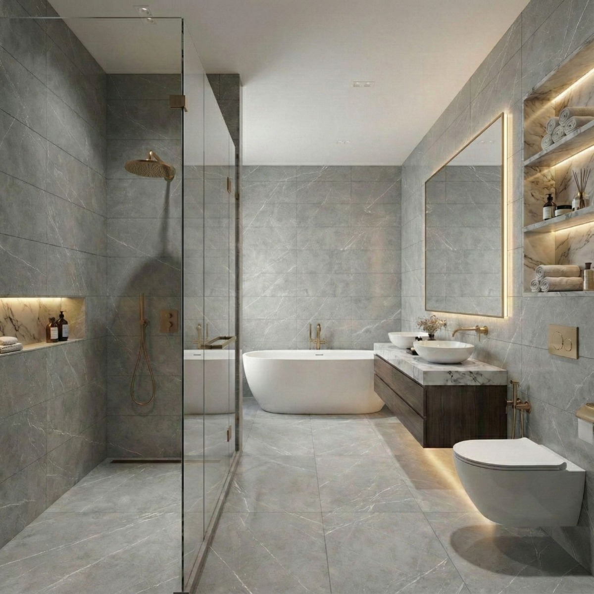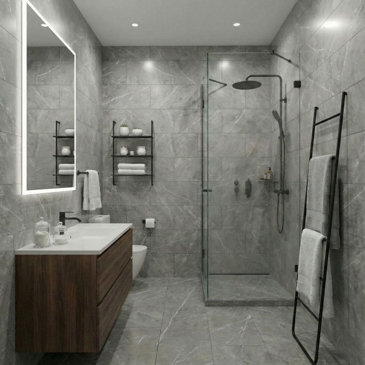 Spider Grey Marble Effect Rectified Matt Porcelain Wall and Floor Tile offers the elegance of a marble effect tile in a finish that still feels practical to live with. The mix of smoky grey shading and marble-inspired patterning gives the tile a premium feel, and the matt finish stops it from looking one-dimensional. The benefit of choosing porcelain here is that the surface stays robust and low-fuss in daily life, rather than looking good only on day one. Rectified edges also help the finished installation look cleaner and more precise. The matt surface keeps the overall result grounded and easier to style day to day. At 300x600mm, the tile is easy to use in tighter spaces and still large enough to keep the finished surface feeling fairly clean. It is especially effective in bathrooms where continuity across walls and floors makes the whole space feel more resolved.