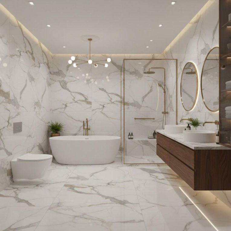 Statario Roten Brown And Grey Marbled White Marble Effect Rectified Carving Porcelain Wall and Floor Tile gives the classic marble effect tile look a more polished, usable edge for everyday interiors. You get the familiar depth of a marble effect tile here, with clean white tones and subtle veining that make the surface feel layered and refined. The porcelain body gives it the kind of dense, easy-care surface that works well in everyday spaces. Rectified edges also help the finished installation look cleaner and more precise. The carving finish adds a little more surface character without making upkeep feel complicated. In 600x1200mm, the tile has enough scale to make smaller rooms feel less chopped up and larger rooms feel more resolved. Because it works on both walls and floors, it is easy to carry through bathrooms, kitchens and circulation spaces for a more joined-up interior.