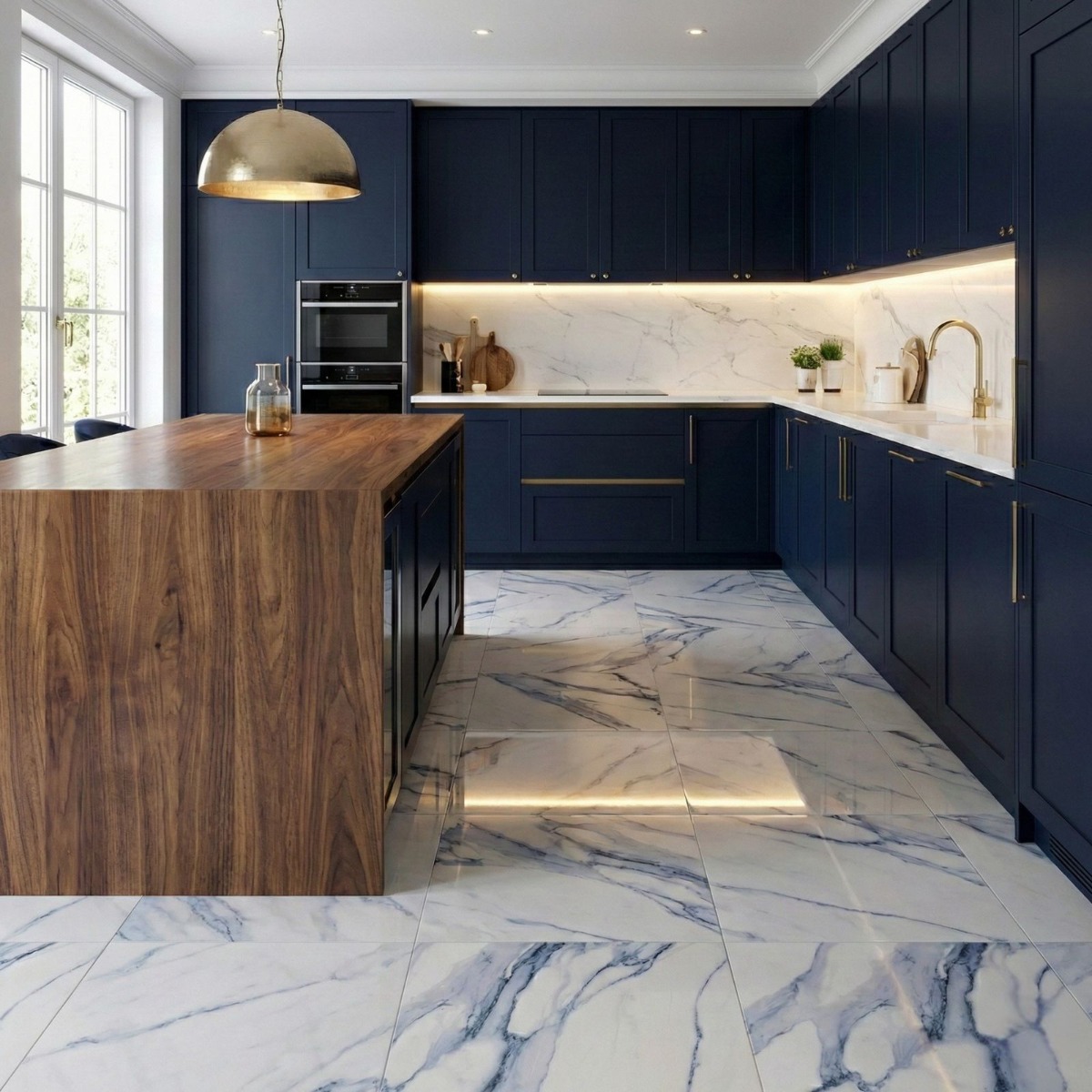 Pairing tip: Keep surrounding finishes soft and plain with warm neutrals, natural oak or gentle greys so the marble movement does the work.