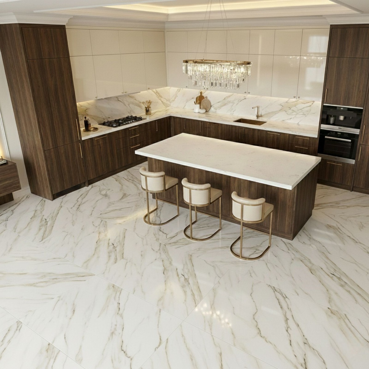 Statuario Mercury Gold White Marble Effect Rectified Gloss Porcelain Wall and Floor Tile